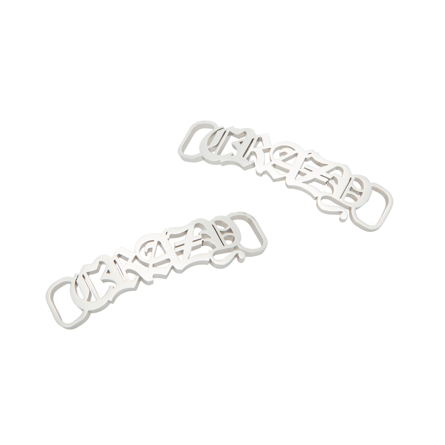 Introducing our latest product, the Personalized Shoelace Buckle by My Little Necklace. Customized with your chosen text, this buckle adds a touch of personalization to your sneakers. Crafted to order in a gothic font that hints at the text but doesn't overpower (can you see ours say *expletive*?), this buckle is available in gold, silver, or rose gold finish.