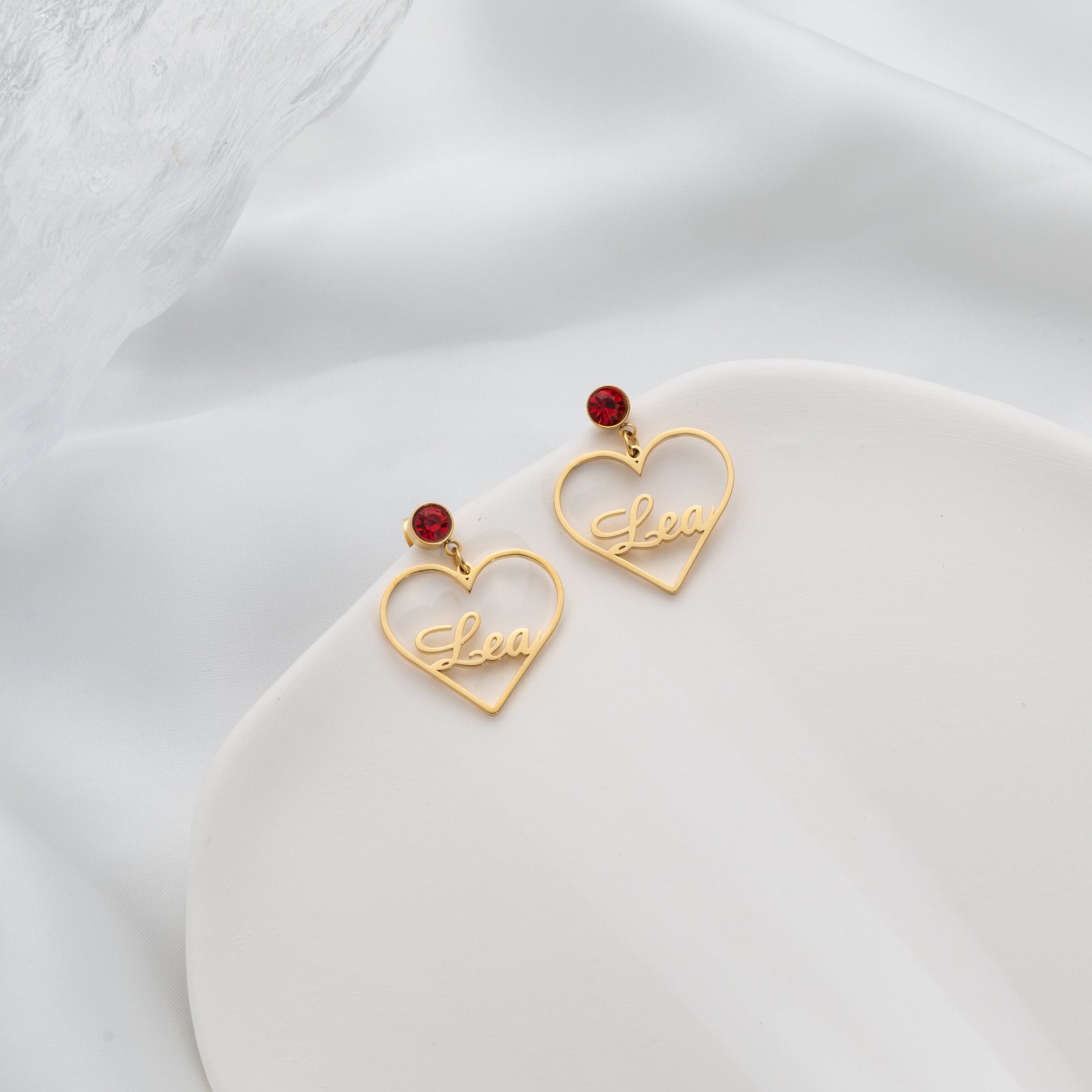 These earrings are custom-made and crafted in high-quality gold, silver, or rose gold finishes (stainless steel) for a luxurious and elegant look. With their classic and romantic design, they are perfect for adding a touch of love to your outfit or as a cherished gift for a loved one.