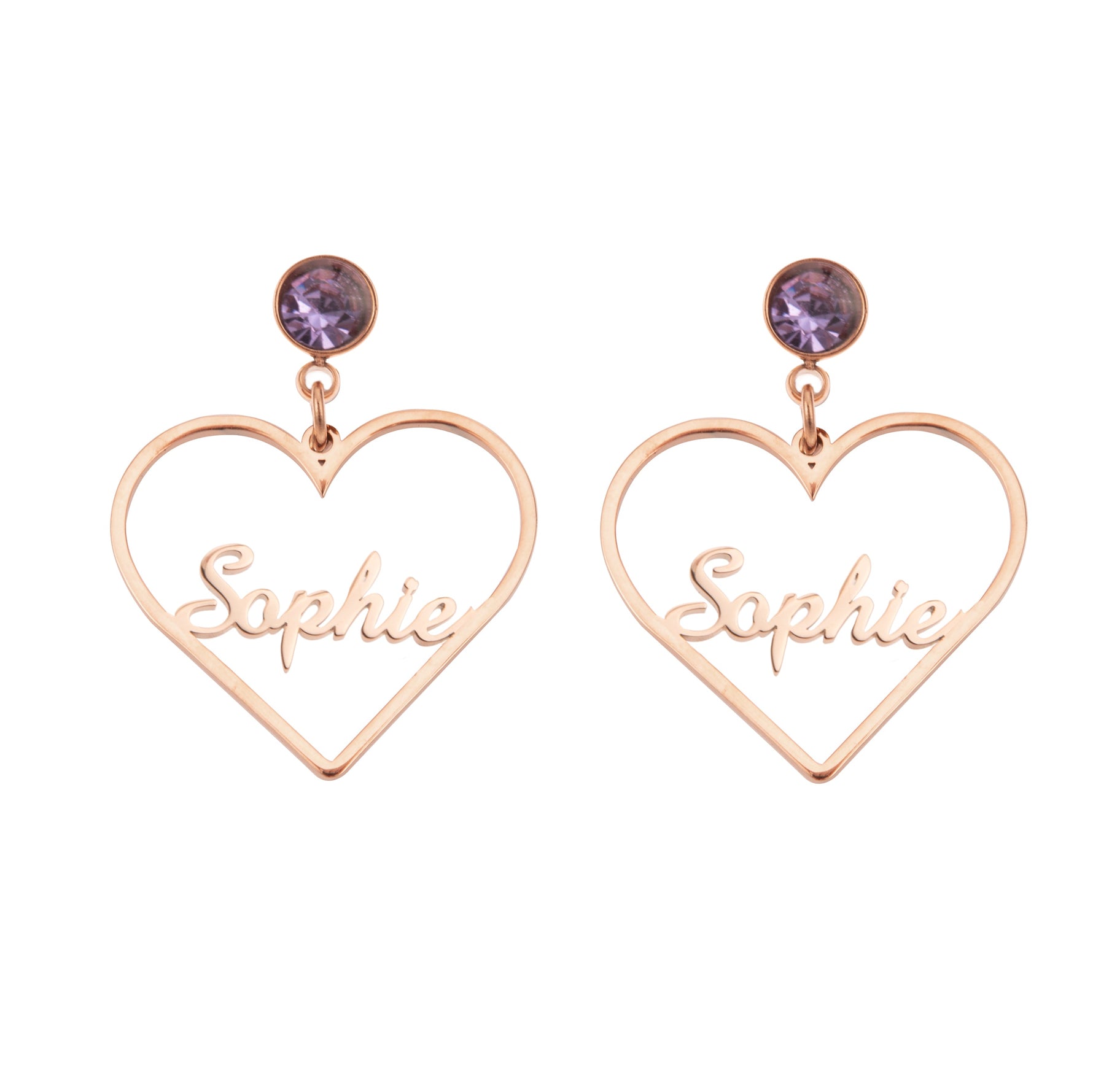 Each earring is delicately engraved with a name or text of your choice at the heart's center, creating a truly unique and personalized piece. You can also choose a birthstone to adorn the clasp for an extra personal touch.