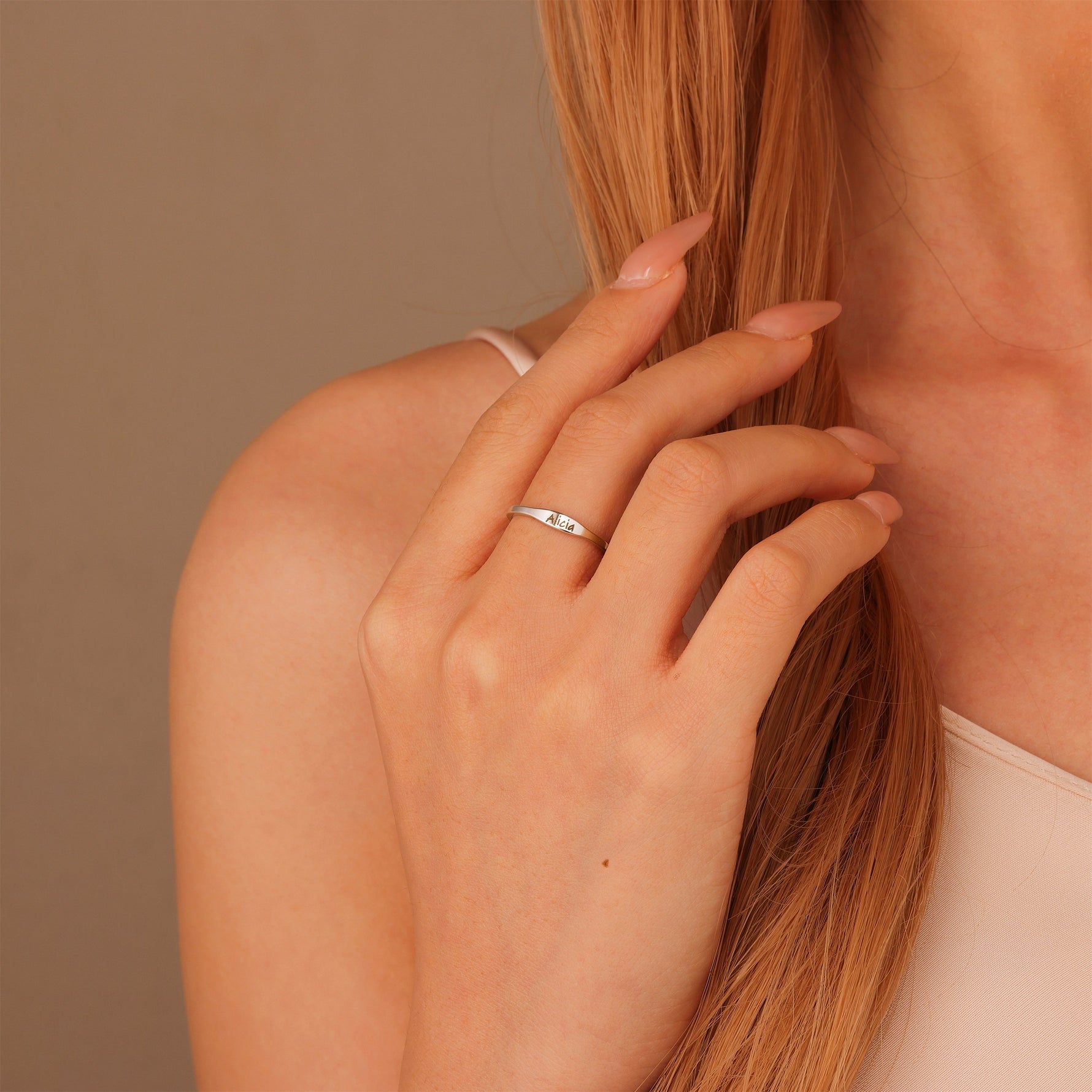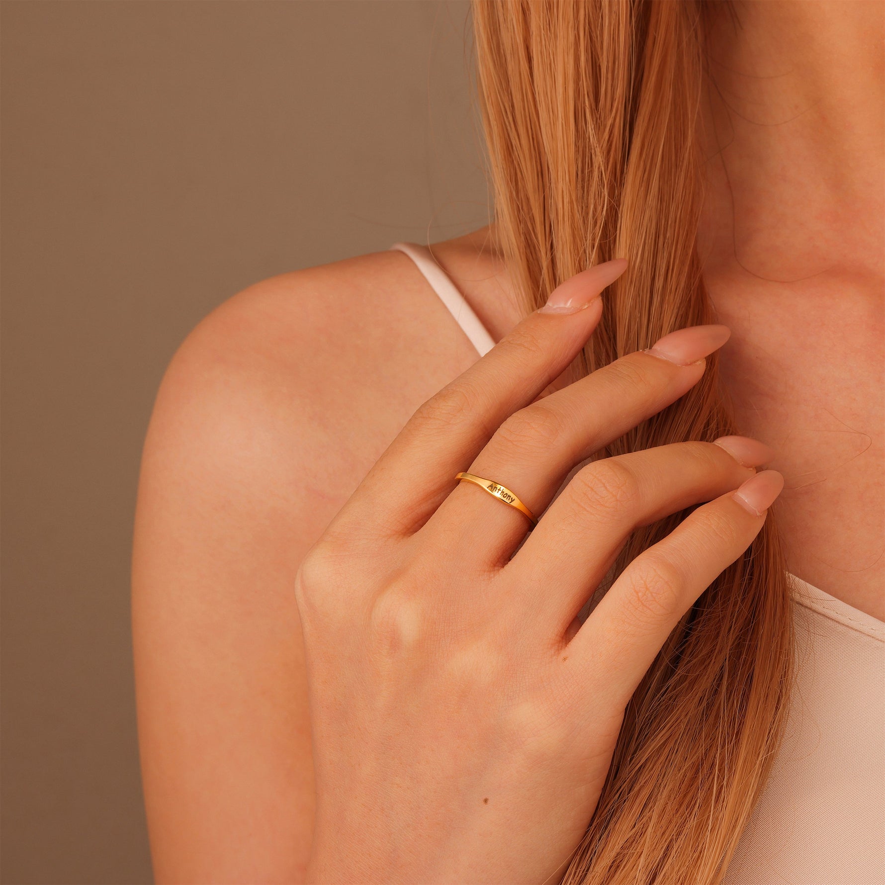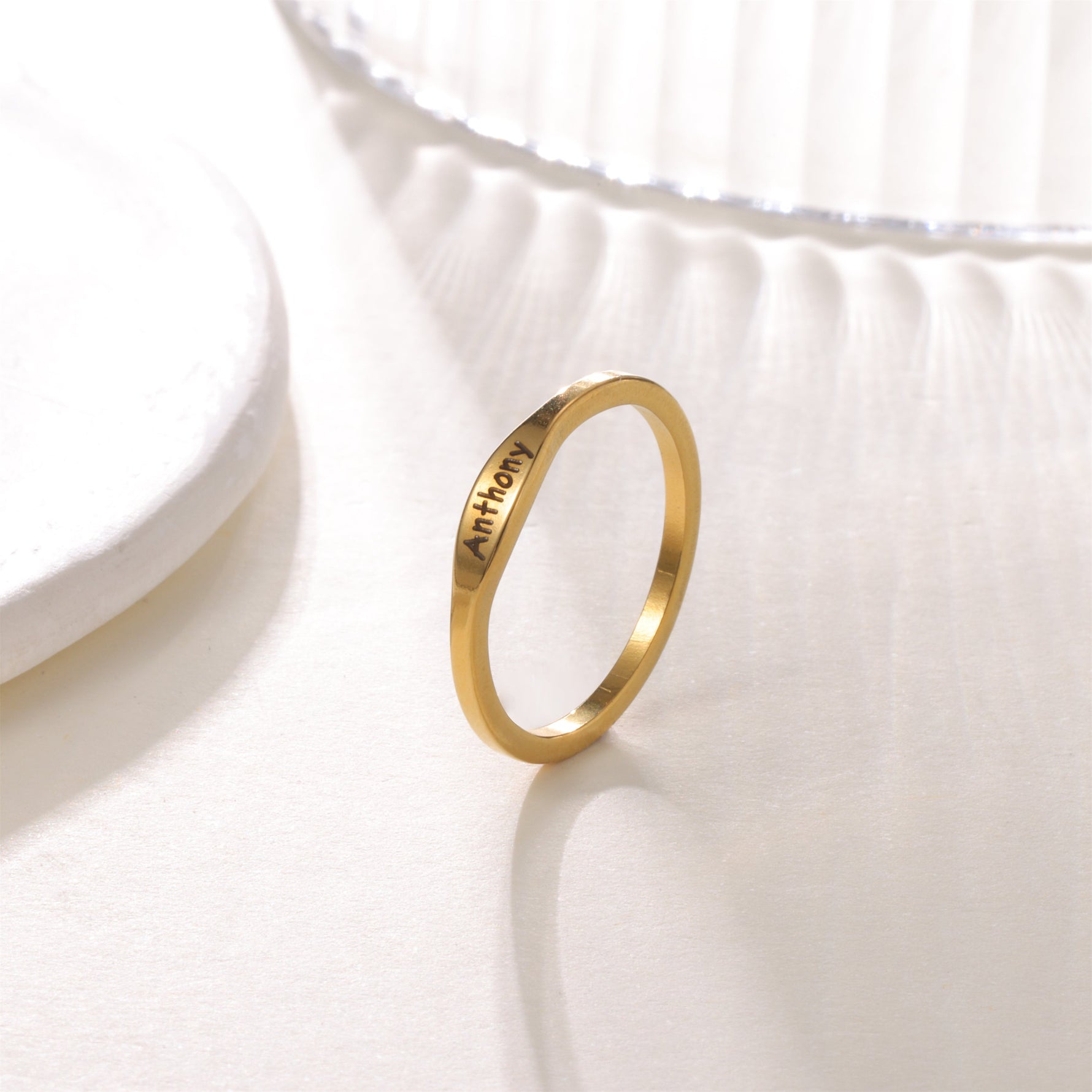 Express your individuality or give a unique gift with our personalised ring engraved with a name. Available in three beautiful finishes: gold, silver, and rose gold, this delicate ring is suitable for all occasions, whether it's a birthday, wedding, or simply to commemorate a precious memory. The subtle engraving on the elegantly curved surface highlights the name of your choice, adding a personal touch to this refined piece of jewellery.