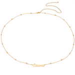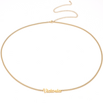 Tell your story in gold with the Corps & Lettres Personalised Belly Chain. Whether you choose your name, a romantic word, or an empowering phrase, this customisable waist chain turns your jewellery into something truly personal. With a choice of chain styles and finishes, it's made to suit your mood, your body, and your life. A thoughtful gift and a meaningful accessory, this is more than just jewellery — it's you, beautifully worn.