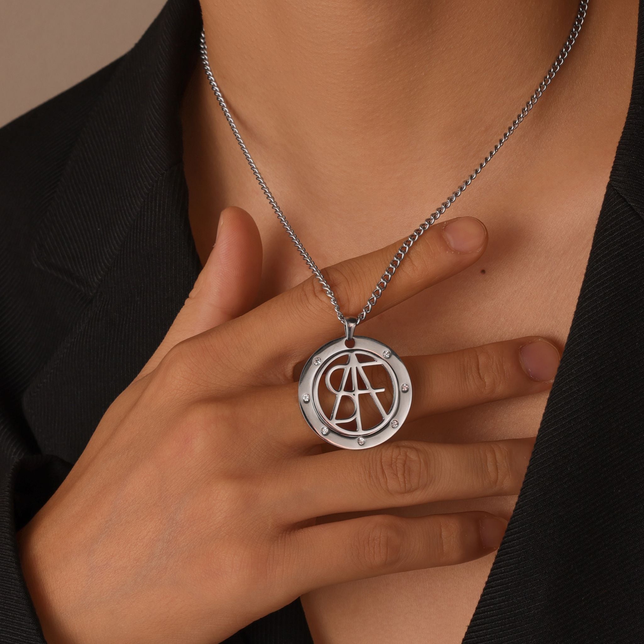 The circular pendant design feels both modern and timeless.