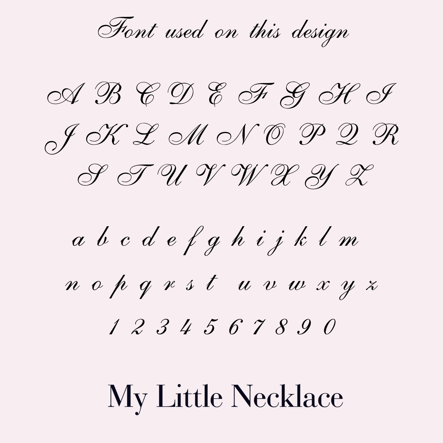 At My Little Necklace, you can personalise your jewellery using a wide range of languages and alphabets, including Arabic, Russian and other non-Latin scripts. We also support special characters and symbols such as @, $, &, *, ♡ and more.