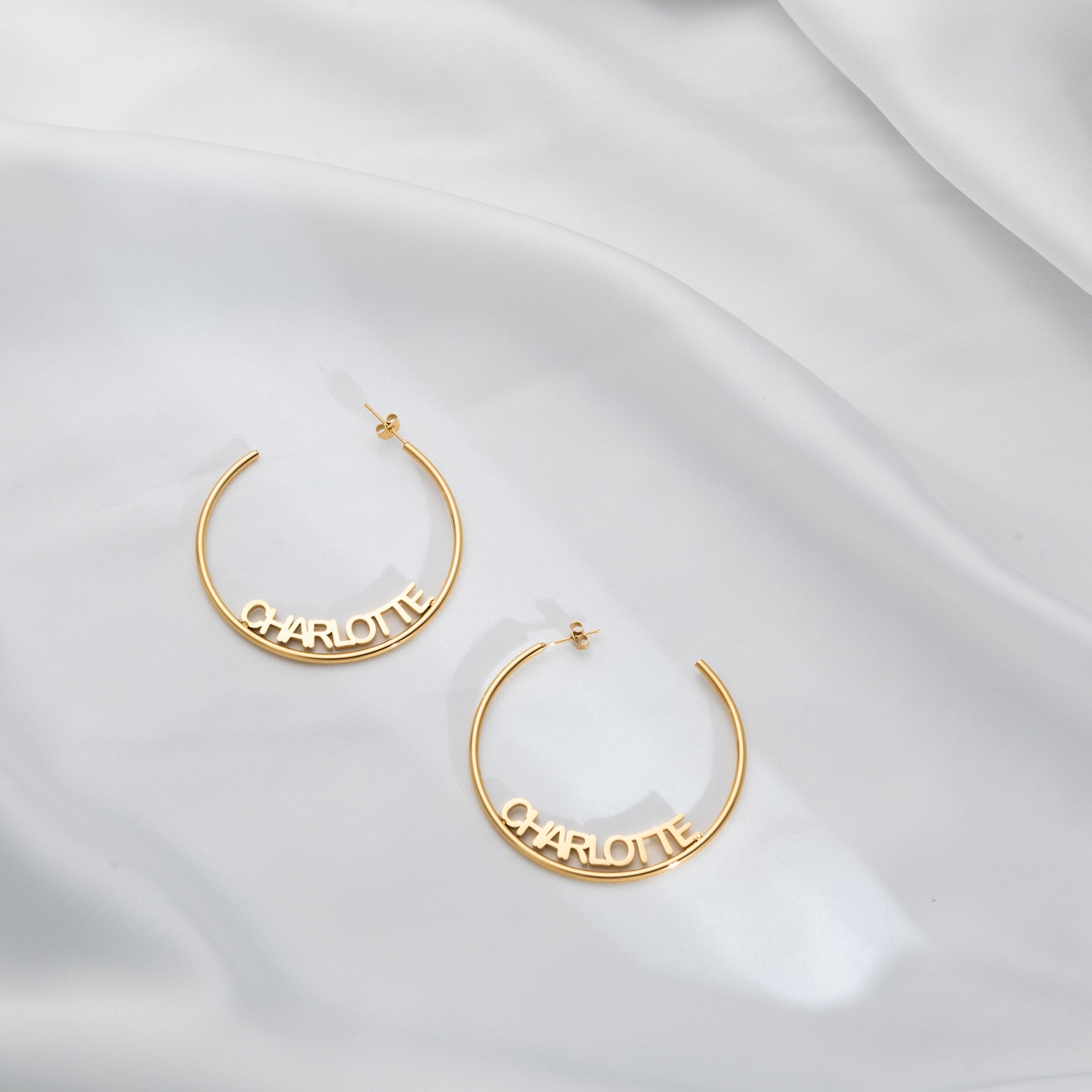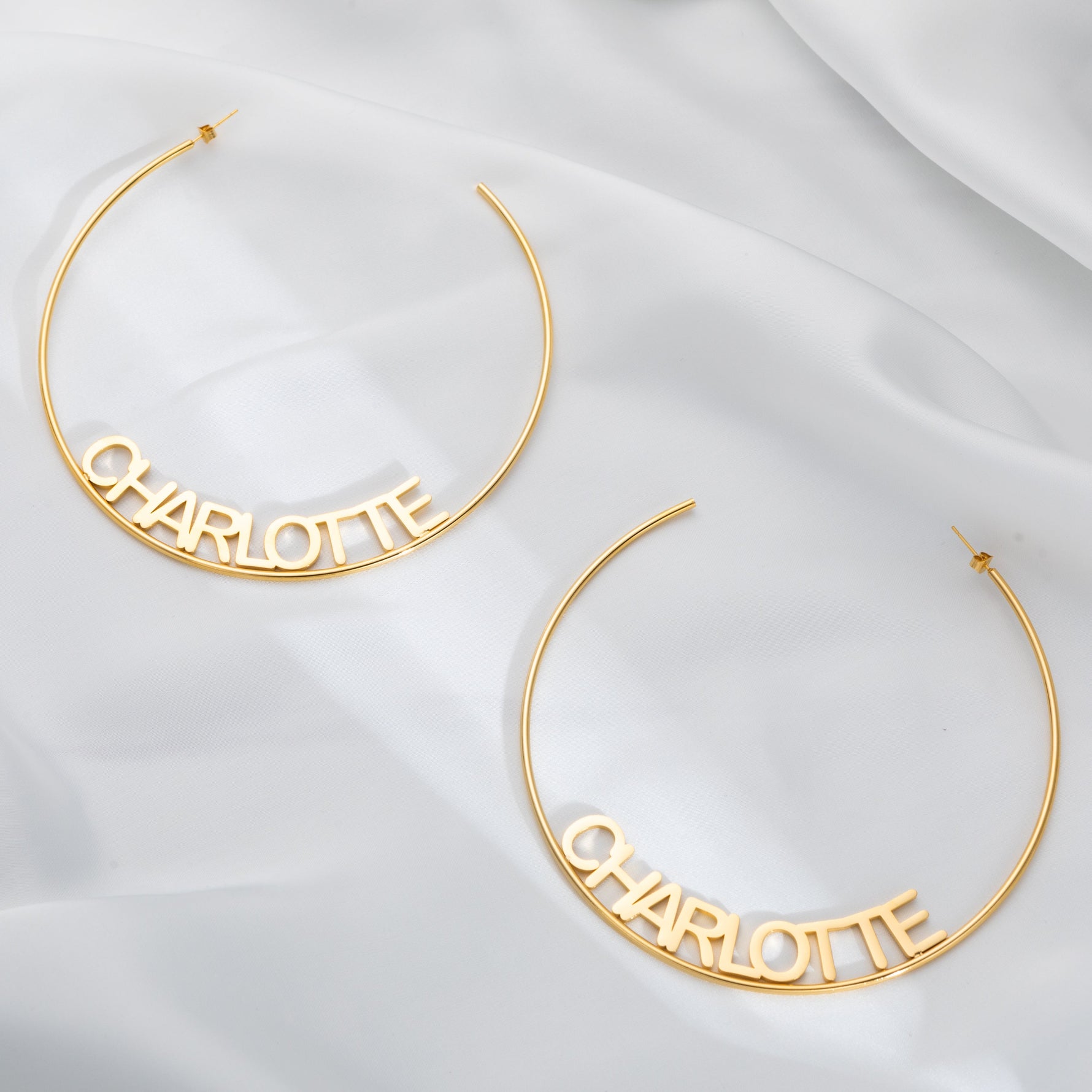 Whether you prefer the striking 10 cm statement hoops or the chic elegance of 8 cm hoops, these earrings add a personalised touch that makes them truly one of a kind.