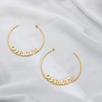 Turn everyday style into a statement with our Personalised Open Hoop Earrings, a bold yet elegant accessory that combines fashion with meaning. Each hoop is engraved with the name or word of your choice, creating a unique design where the text curves seamlessly into the open hoop.