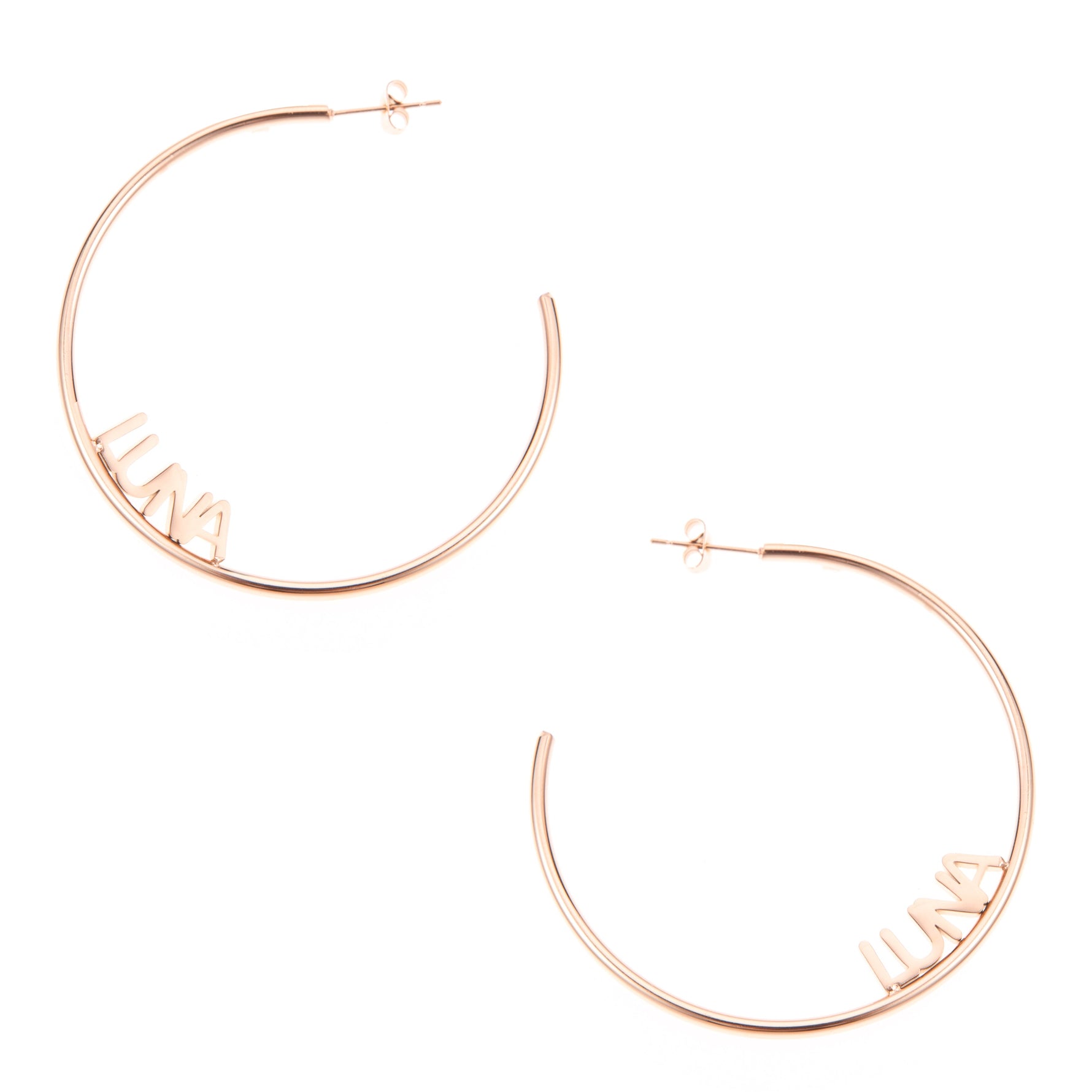 Crafted from stainless steel and plated in your choice of gold, rose gold, or silver, these earrings are custom-made to order for a look that’s stylish, personal, and completely you. Lightweight and comfortable to wear, they’re available in three diameters — 5 cm, 8 cm, and 10 cm — so you can choose the perfect size to suit your style.