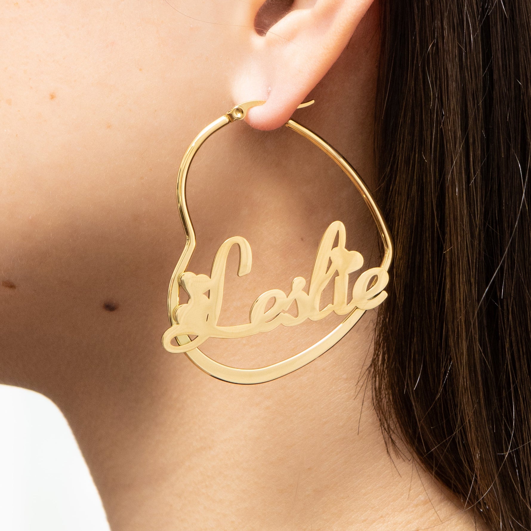 Embrace the charm of customization with our heart-shaped hoop earrings – a beautiful blend of style, sentiment, and personalization.