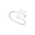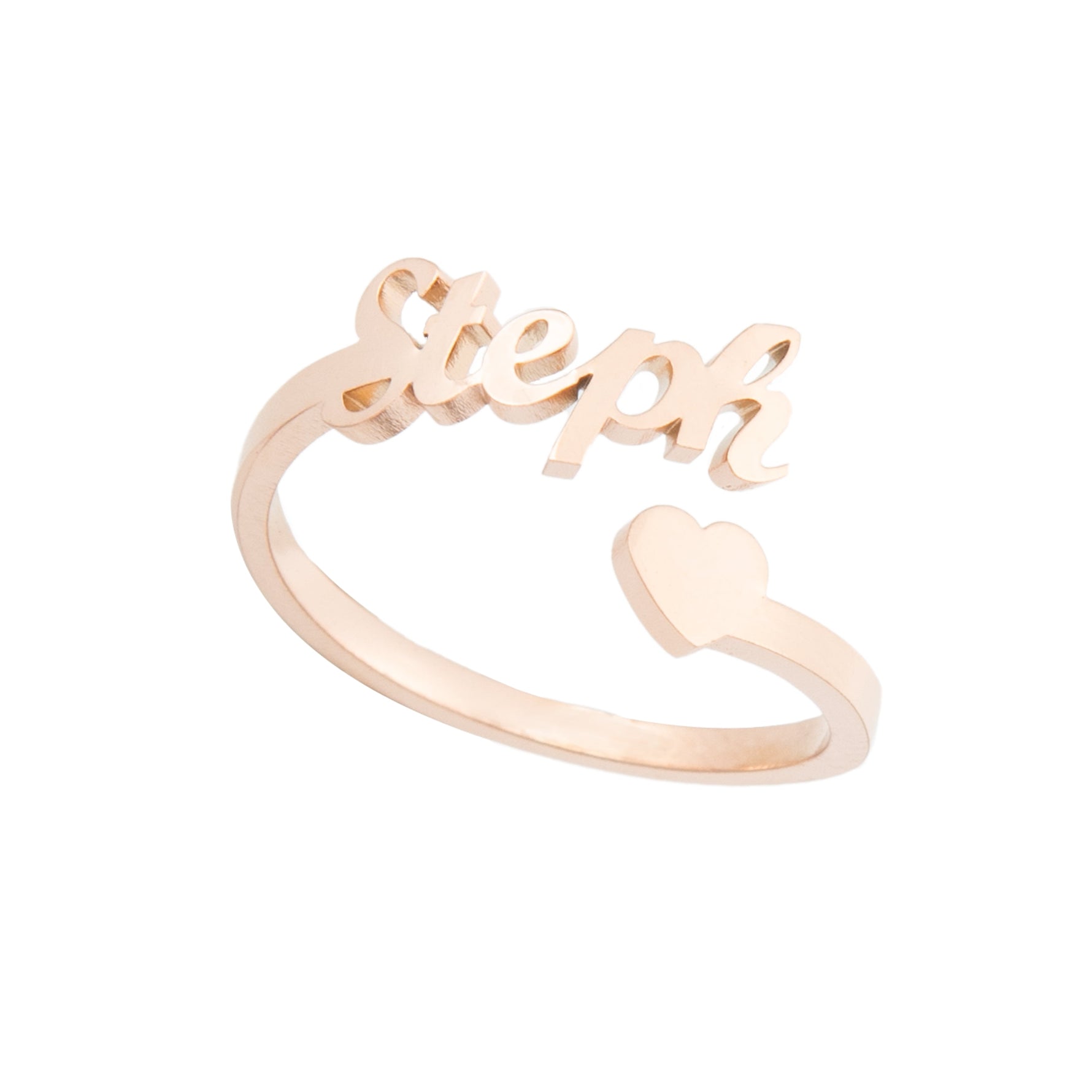 Gift a unique and personalized piece with our open ring available in gold, silver, or rose gold finishes. Customize it with the name, word, or date of your choice to create a tailor-made piece of jewelry. The ring is open-ended to fit all finger sizes and features an end shaped like a small heart cut out of the metal, adding a touch of love to this unique accessory.