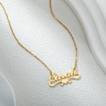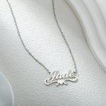 Celebrate who you are—or someone you love—with the Personalised Wavy Heart Necklace. Designed with a delicate, flowing script and flanked by two graceful arabesques, this necklace makes every name feel special.