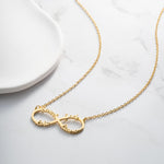The Double Heart Infinity Necklace is a declaration of eternal and steadfast love, where symbolism meets elegance. Available in gold, silver, or rose gold, this delicately crafted necklace incorporates the infinity symbol with two intertwined hearts, representing a love or friendship that knows no end.