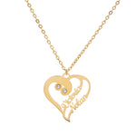 The design of this jewel is enhanced by beautiful arabesques that line the heart, adding a touch of sophistication and delicacy. Additionally, two birthstones set into the pendant add an extra personal dimension, making each necklace a truly unique piece.