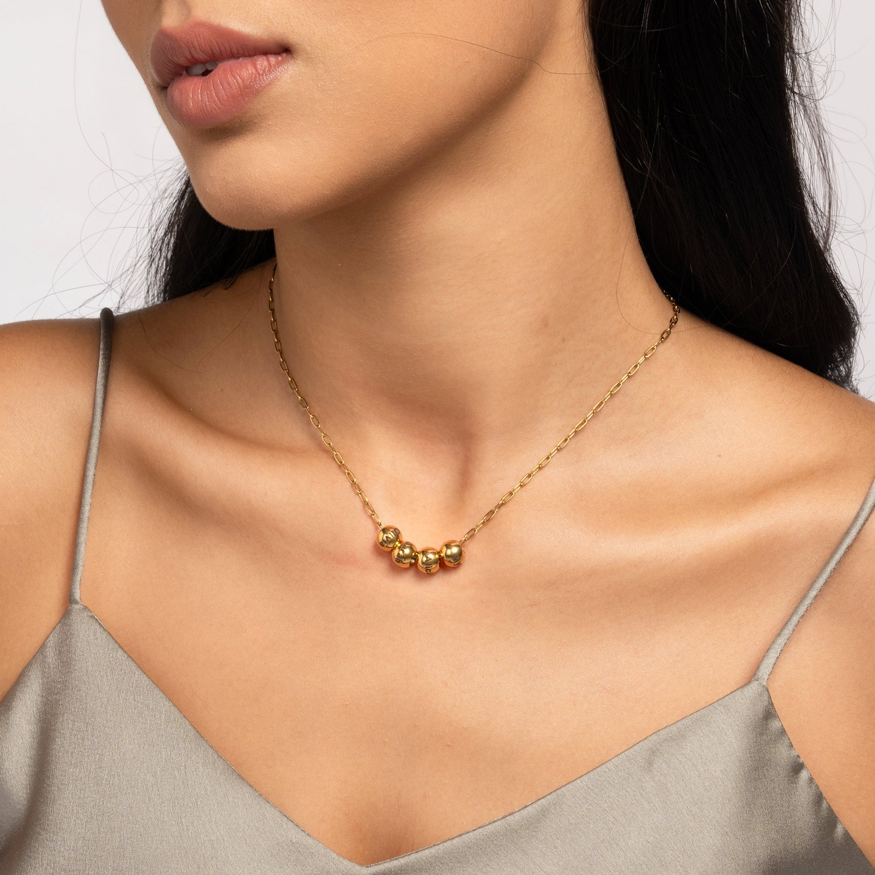 This versatile piece is both delicate and expressive, allowing you to celebrate family, friendship, and love. The smooth, polished beads move freely on the chain, symbolizing the fluidity and constant growth of the relationships we hold dear. The chain itself, with its elegant silhouette and subtle shine, adds a touch of sophistication to this affectionate design.
