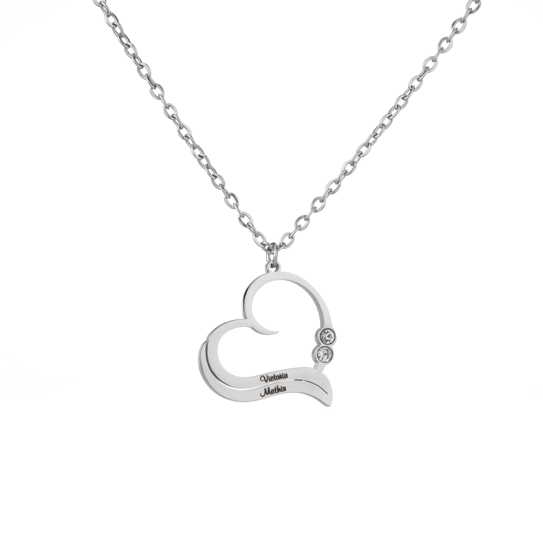 Personalised Open Heart Necklace with Engraved Names & Clear Crystals