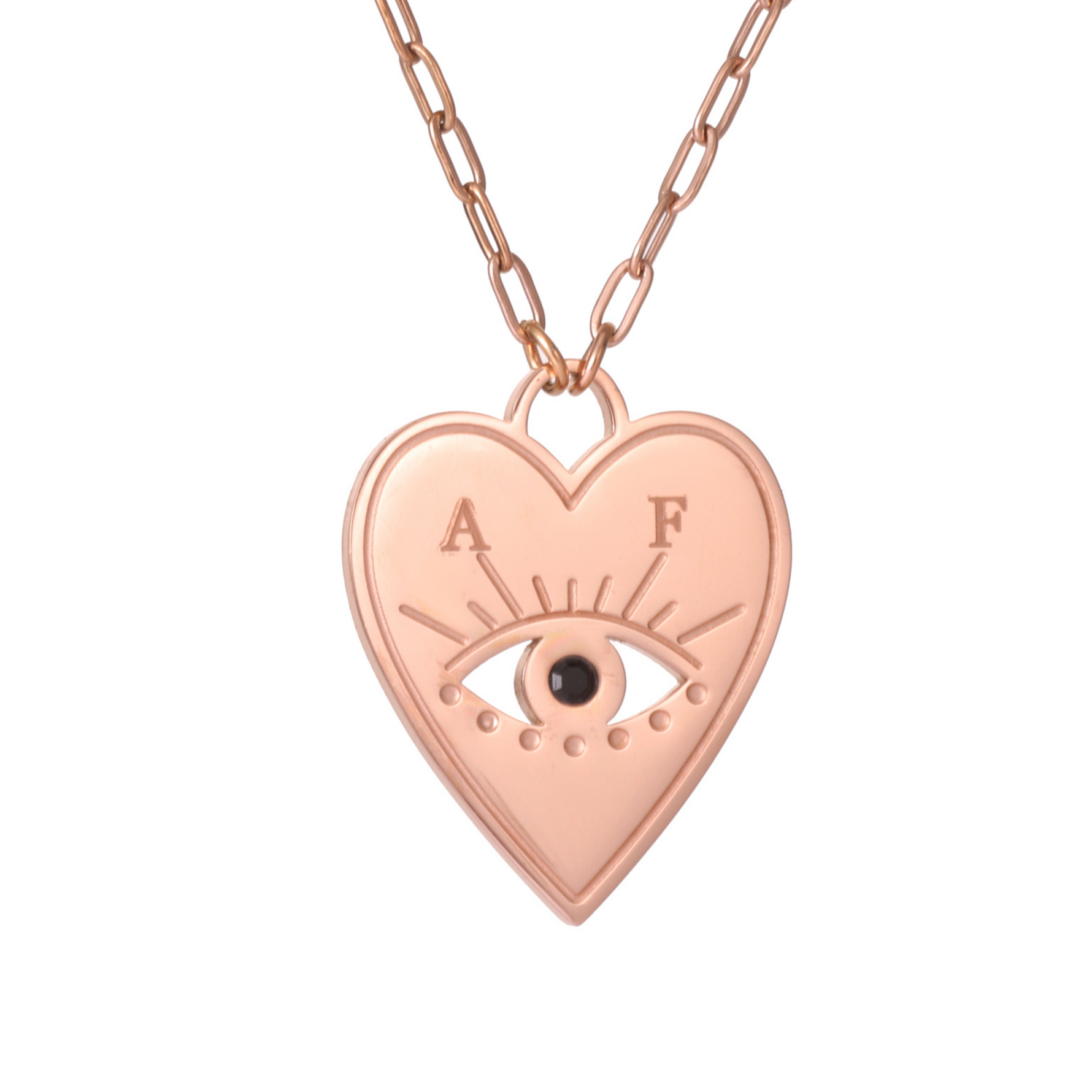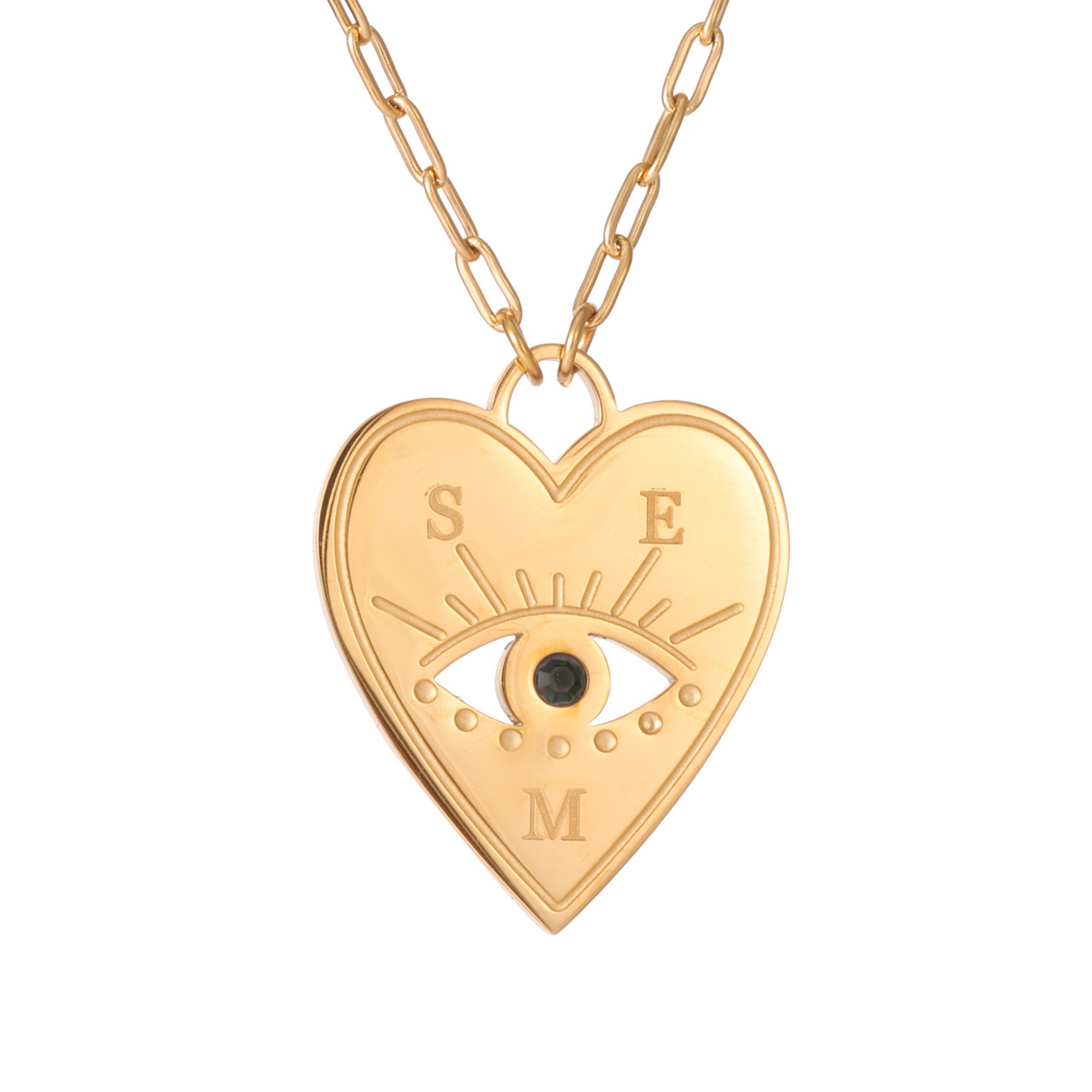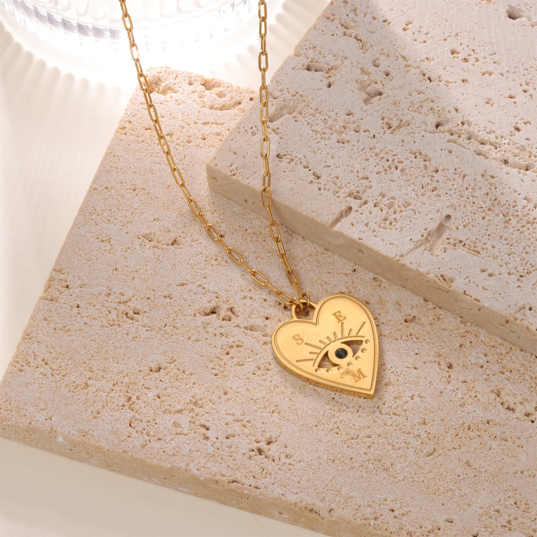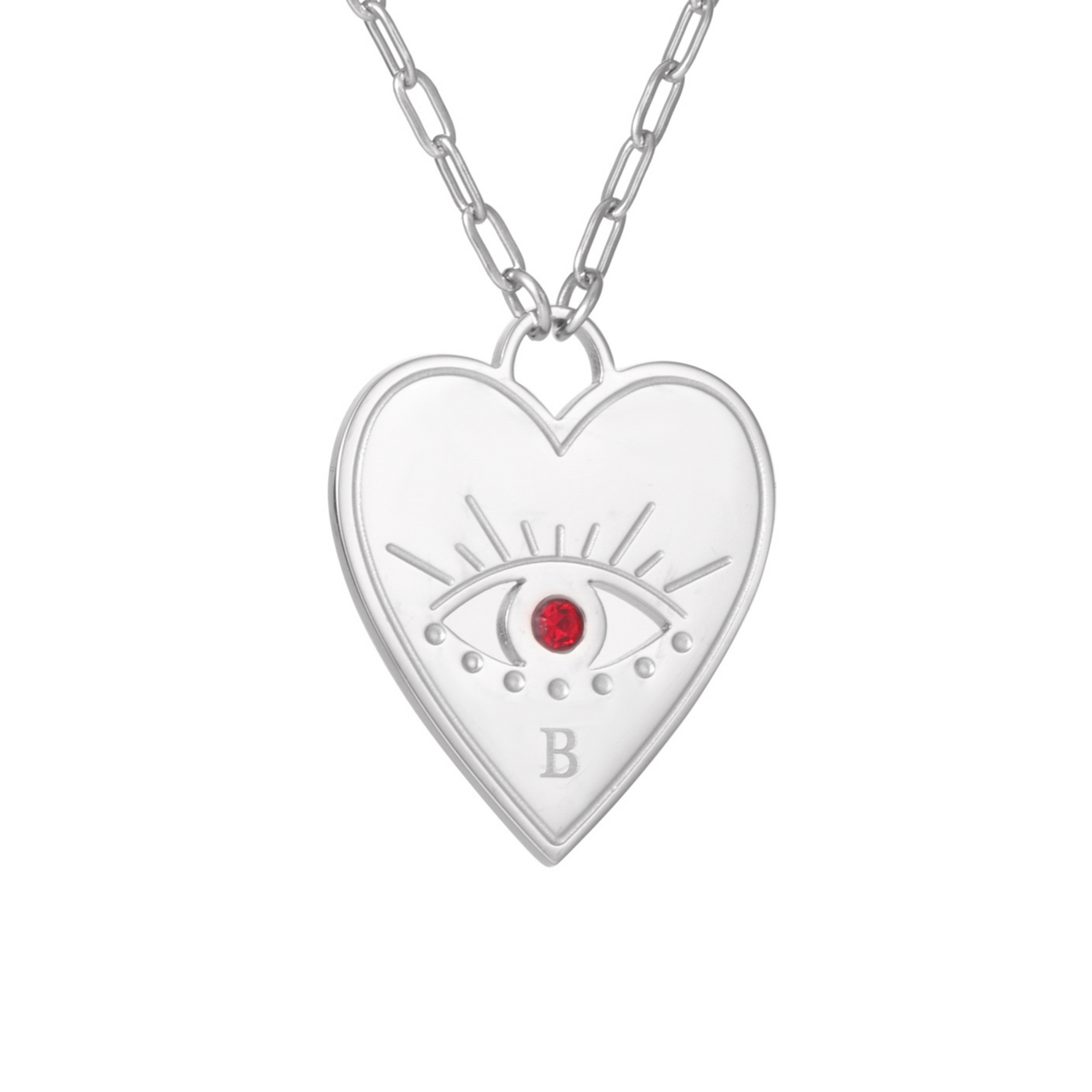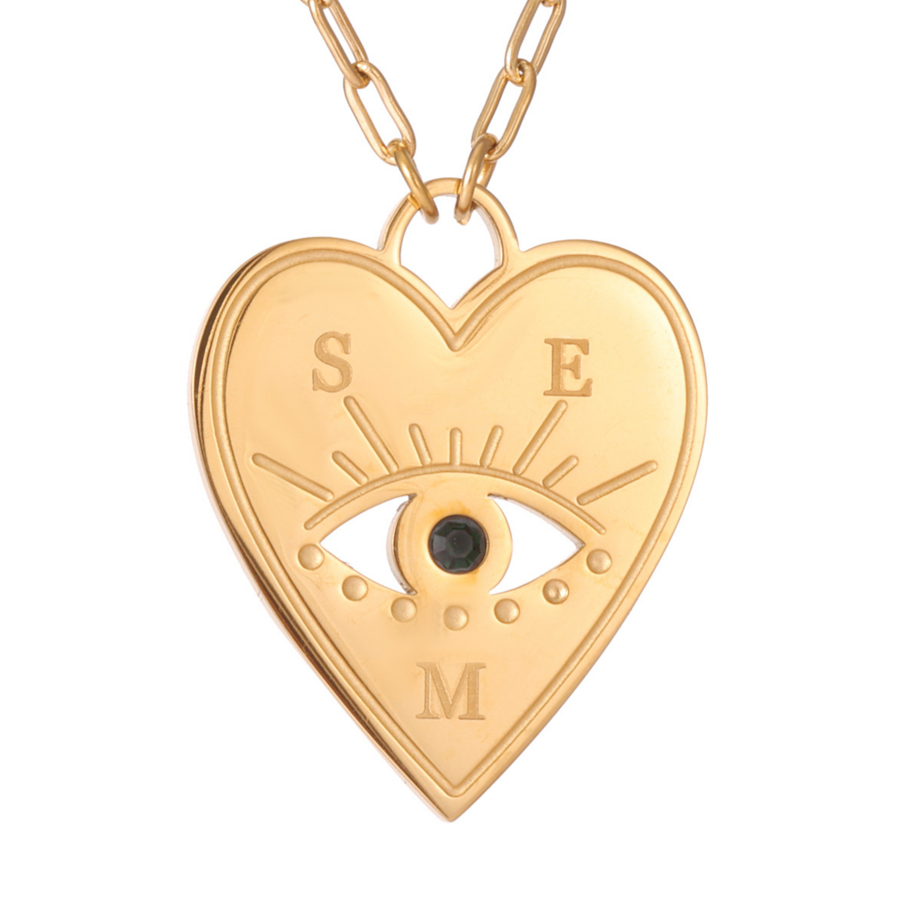 This heart necklace with an evil eye is more than just an accessory, it’s a symbol of protection and style. Available in silver, gold, and rose gold, it features a heart-shaped pendant engraved with a protective eye at the centre, enhanced with a coloured stone to attract positive energy. You can also personalise this necklace with your initials, those of loved ones, or meaningful letters. Made from high-quality materials, this elegant piece can be worn alone or layered with other necklaces for a trendy and protective look.