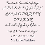 At My Little Necklace, you can personalise your jewellery using a wide range of languages and alphabets, including Arabic, Russian and other non-Latin scripts. We also support special characters and symbols such as @, $, &, *, ♡ and more.
