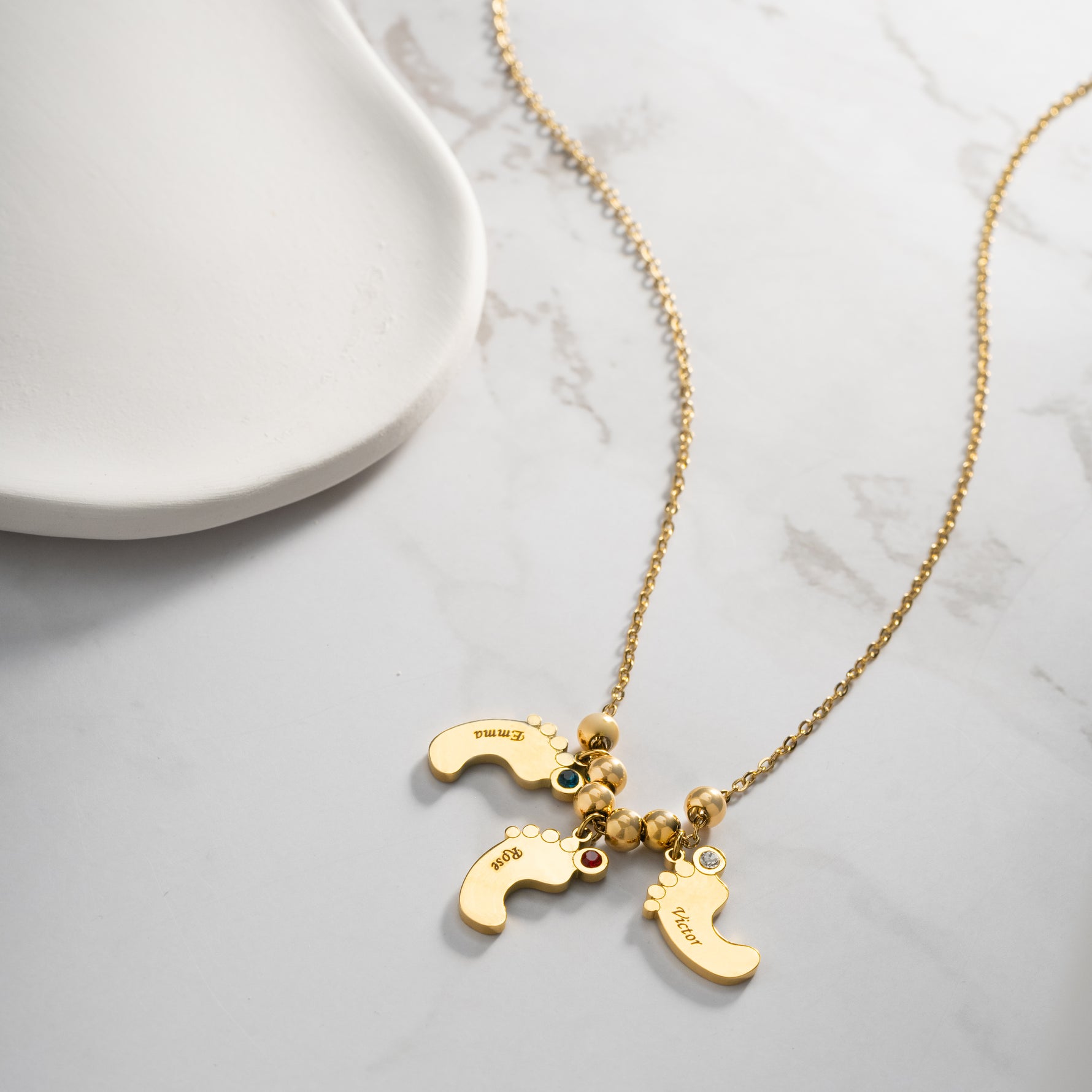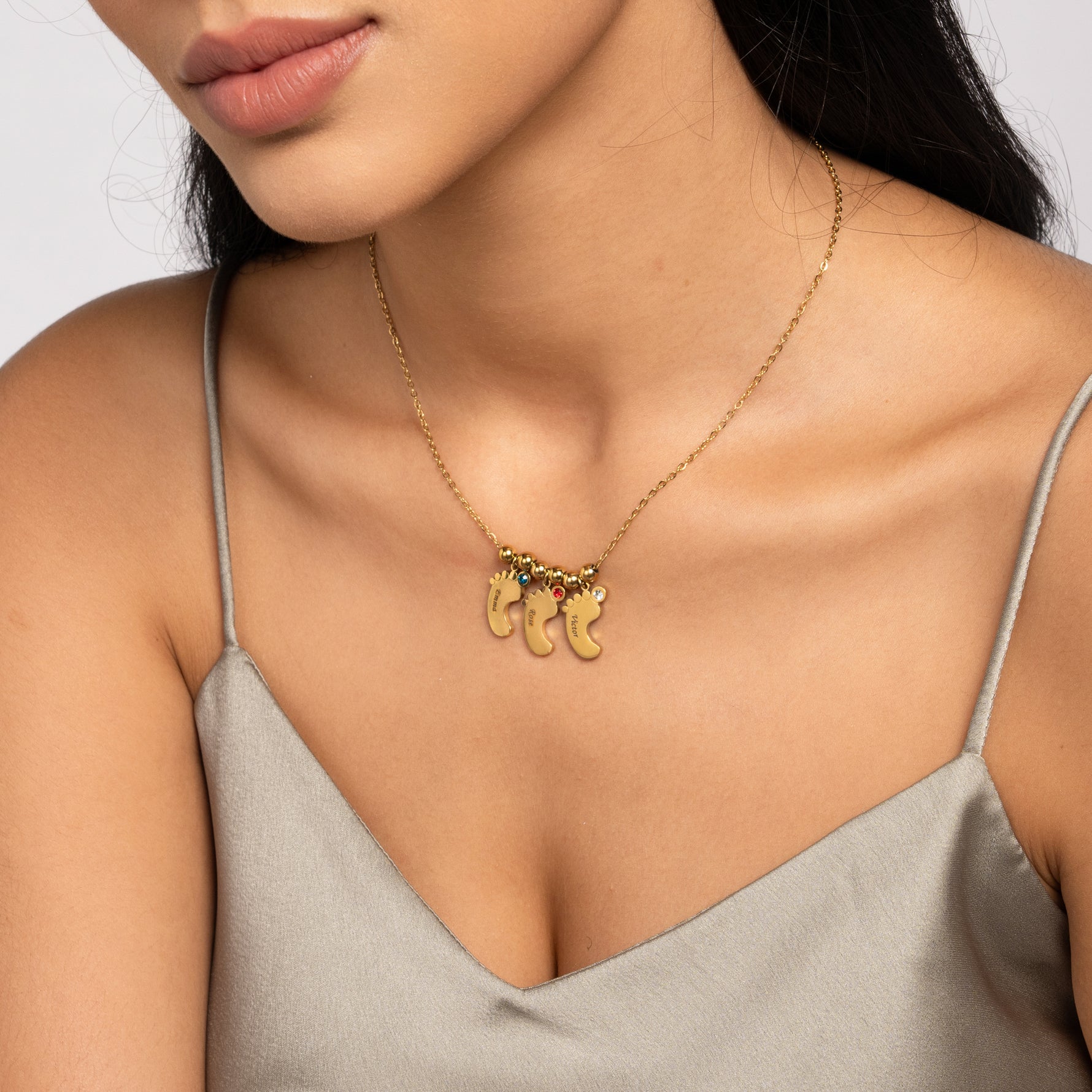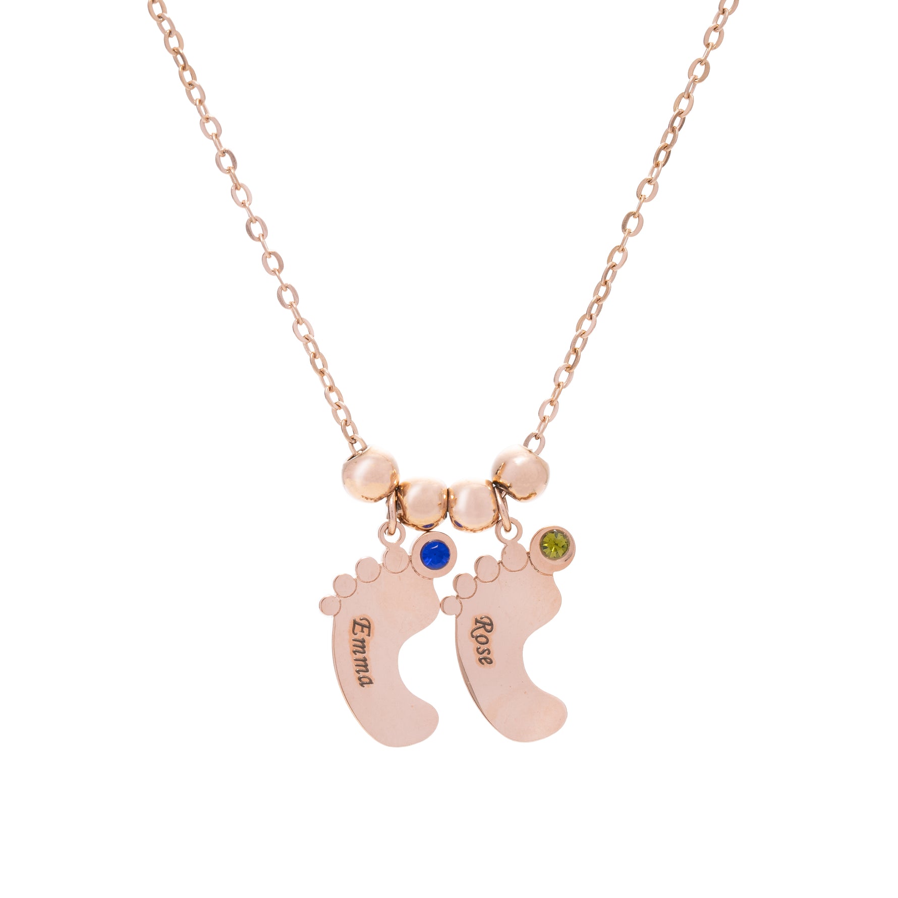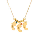 The most valuable thing in the world is family and love. Moms love anything that celebrates their children, which is why they are sure to love our Baby Feet Necklace. Engrave up to five pendants to accompany the coordinating birthstone of each child.