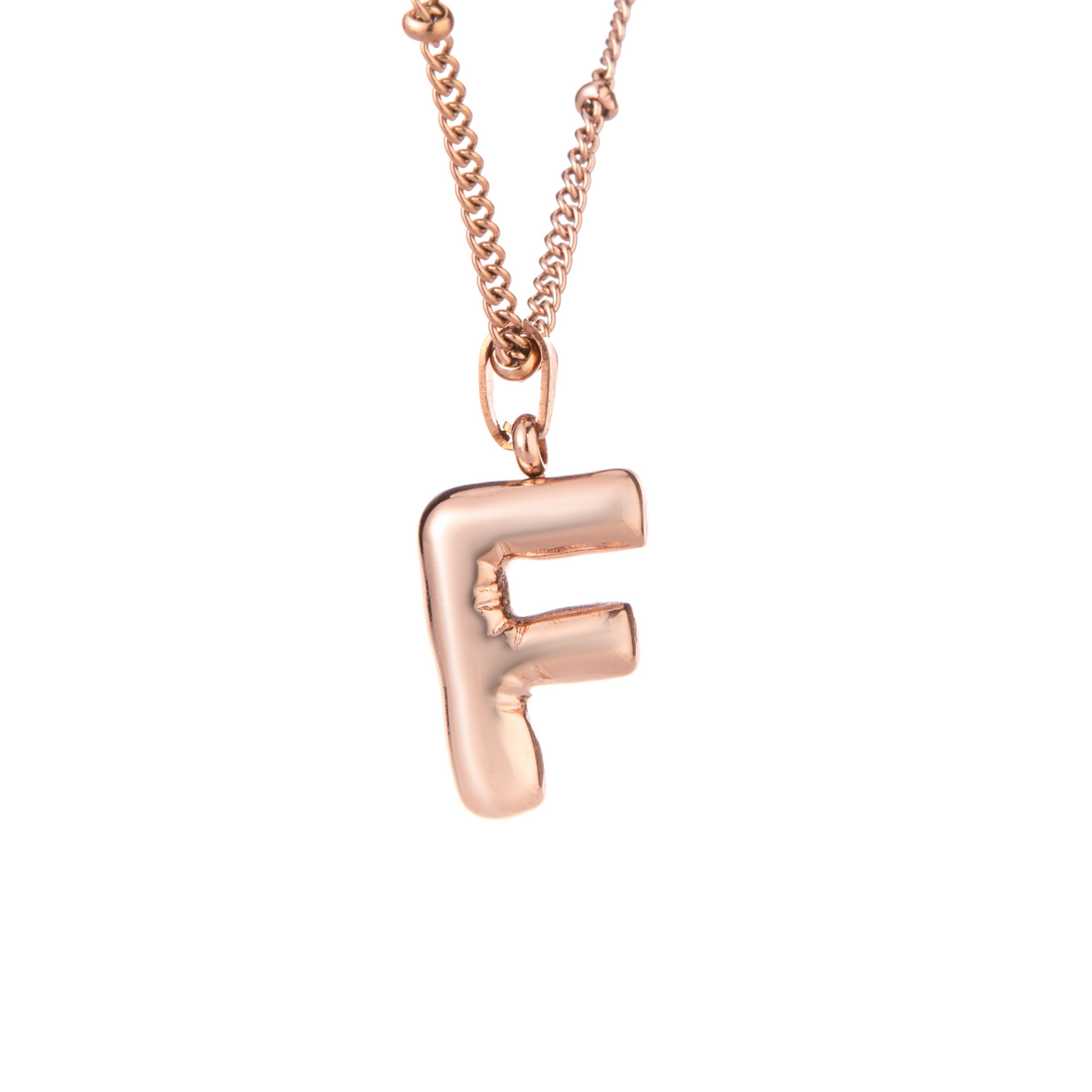 Add a fun and stylish touch to your jewellery collection with our bubbly initial necklace. Featuring a raised, playful letter design, this piece is personalised with the initial of your choice. Paired with an elegant beaded chain, it’s available in gold-plated, silver, or rose gold stainless steel, with three adjustable lengths.