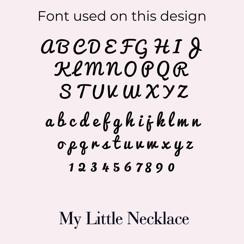 At My Little Necklace, you can personalise your jewellery using a wide range of languages and alphabets, including Arabic, Russian and other non-Latin scripts. We also support special characters and symbols such as @, $, &, *, ♡ and more.