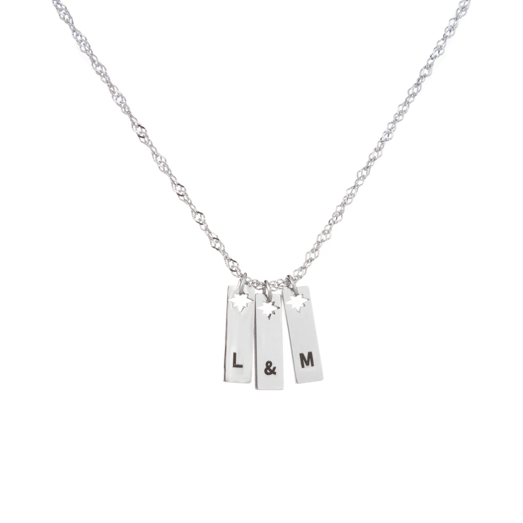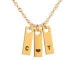 You can personalise this necklace with 1, 2, or 3 pendants, making it a versatile piece that represents your own initials, your children, or someone special. Crafted from durable stainless steel and plated in gold, rose gold, or silver, this necklace is designed to shine every day while holding a personal meaning.