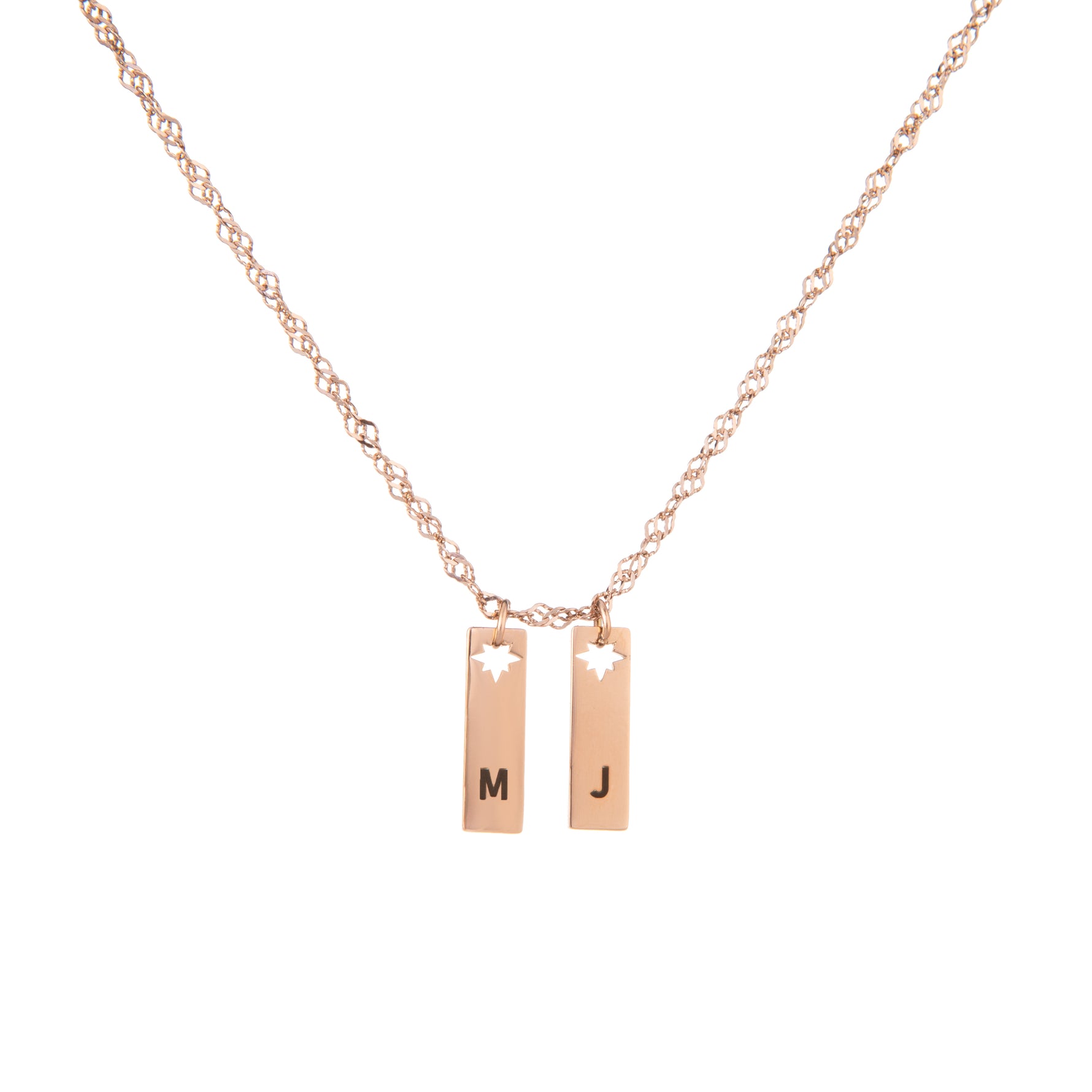 Celebrate individuality with our Personalised Initial Pendant Necklace with Star Cut-Out – a modern keepsake with a celestial twist. Each sleek rectangular pendant is engraved with your chosen initial and finished with a delicate star-shaped detail, symbolising light and inspiration.