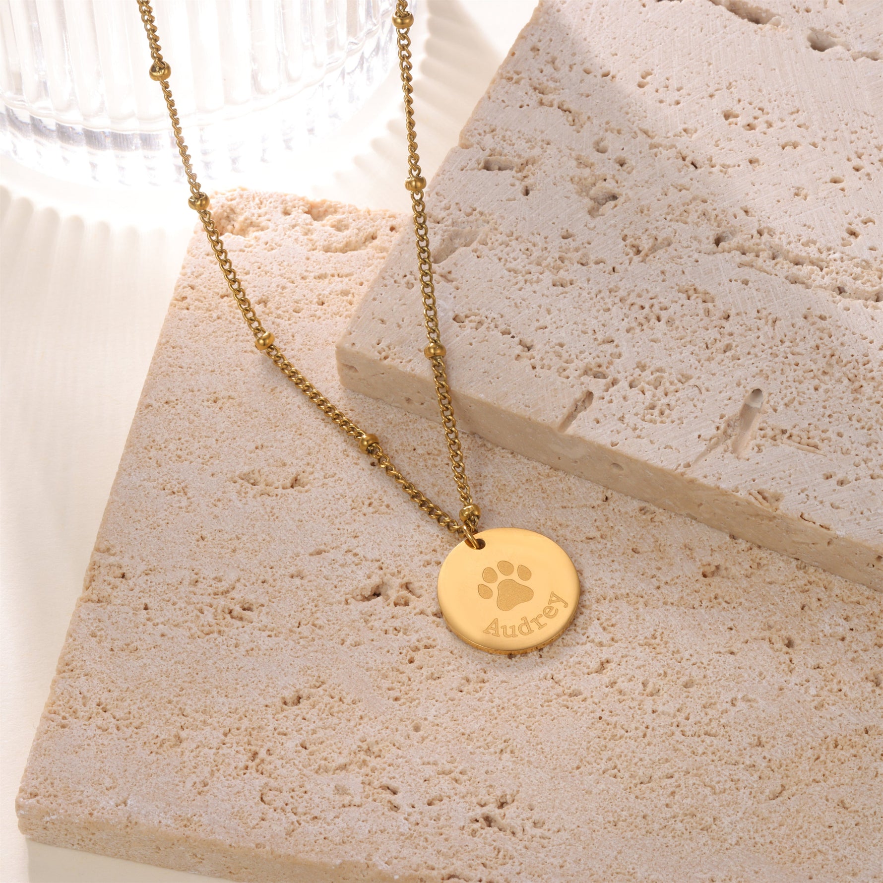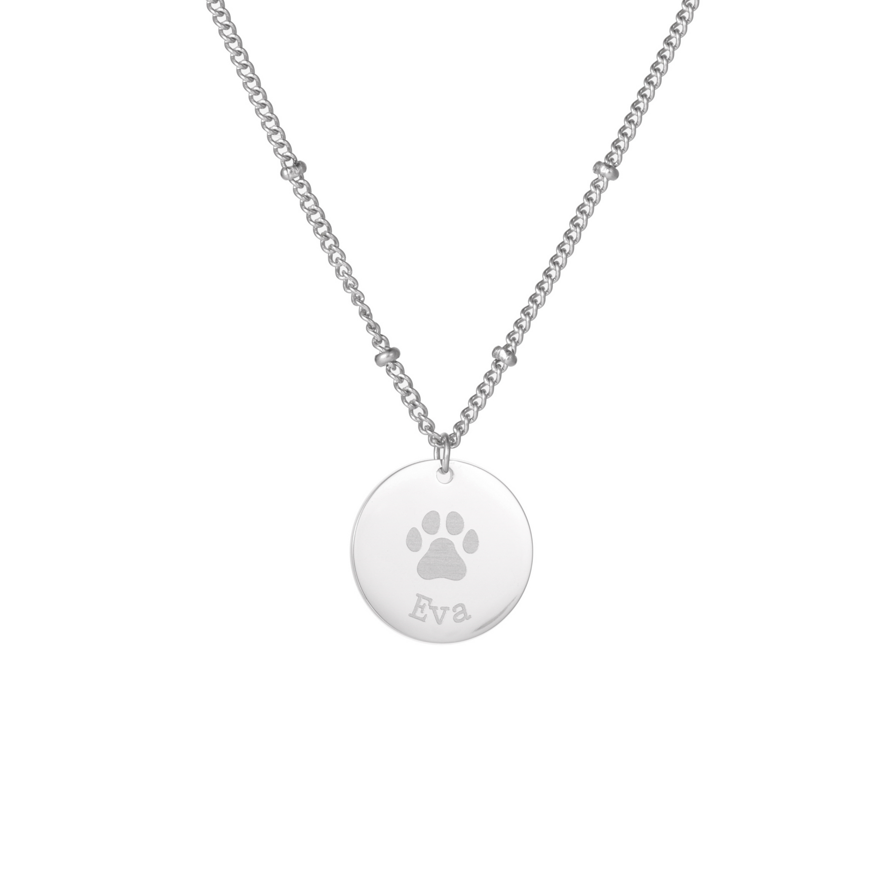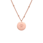 This personalised paw print necklace is a unique piece of jewellery for all animal lovers. Available in three elegant finishes — silver, gold, and rose gold — it features a round pendant engraved with a paw print and the name of your pet. Made from high-quality materials, this necklace offers a subtle and stylish way to keep your companion close to your heart. Whether worn alone or layered with other necklaces, it adds a sentimental touch to any outfit.