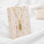 Custom-made and crafted to order, this necklace is available in gold-plated, silver-plated, or rose gold-plated stainless steel. It comes with a matching chain that can be adjusted to your desired length.