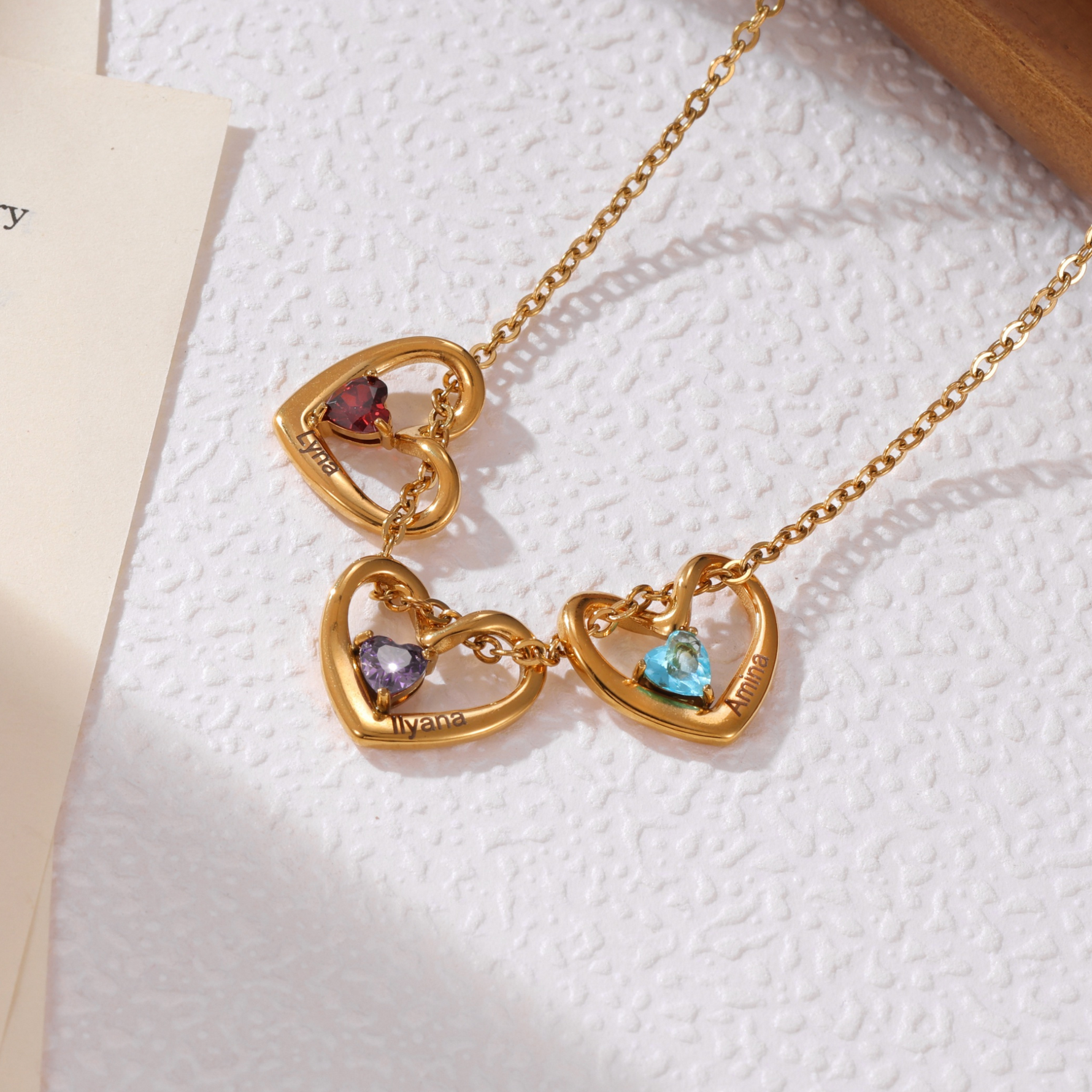 Personalised Intertwined Hearts Necklace with Names & Birthstones