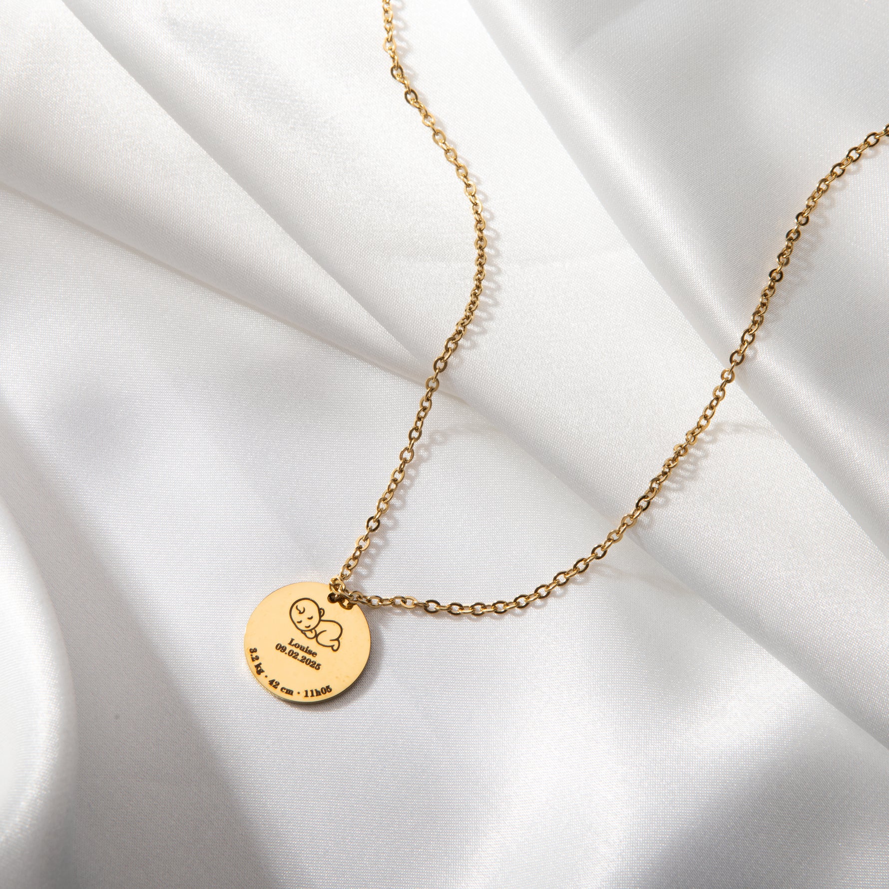 Personalised Birth Details Necklace – Engraved Baby Pendant