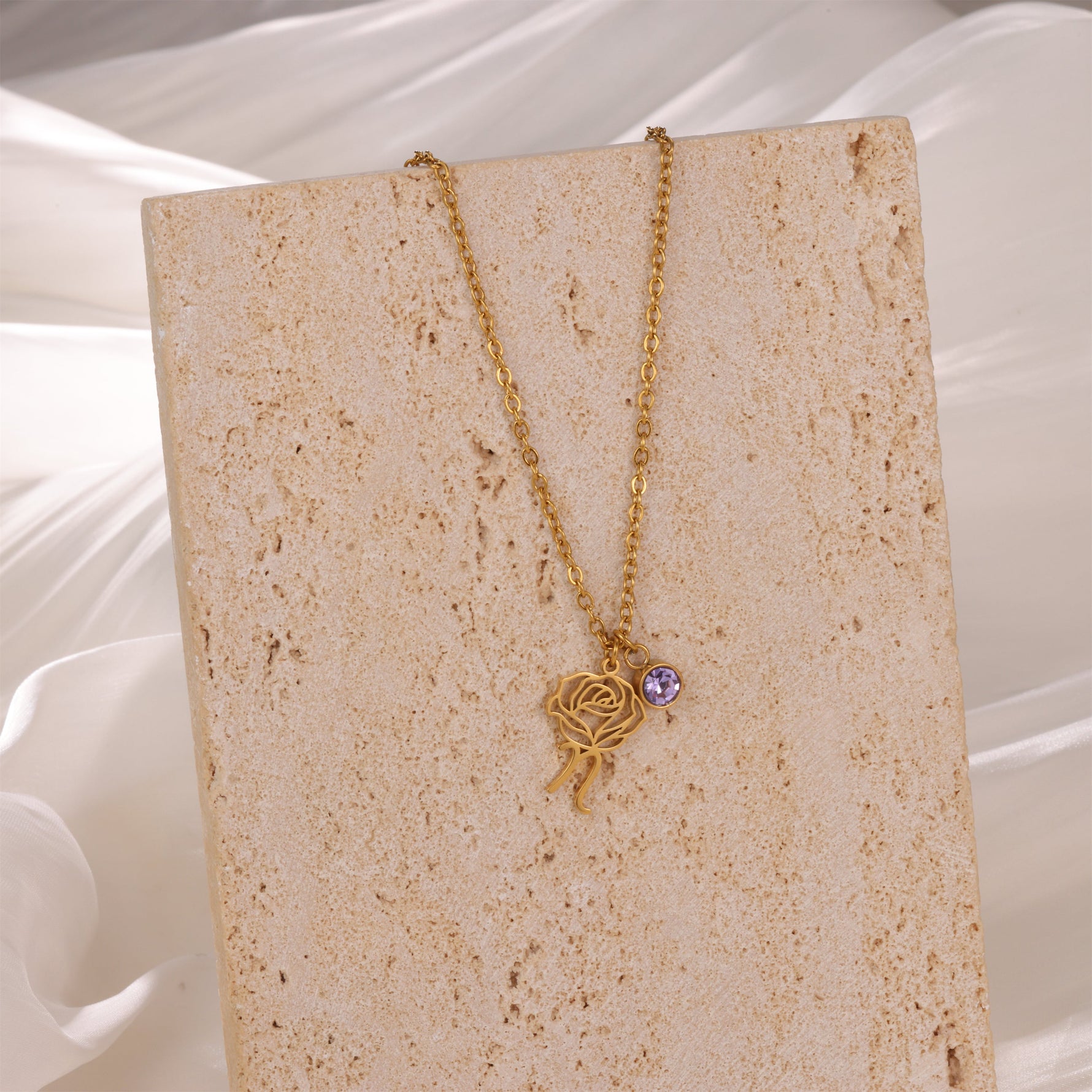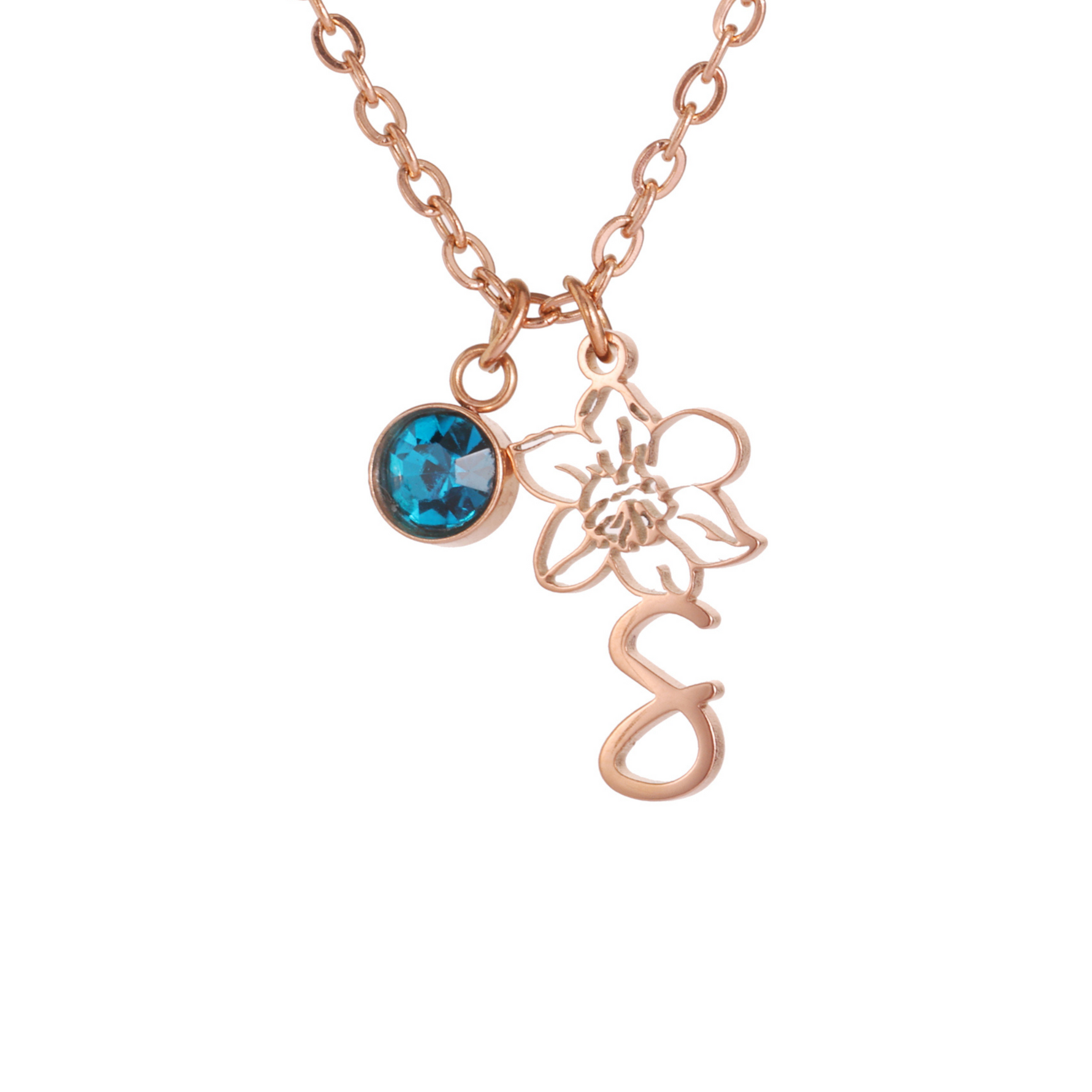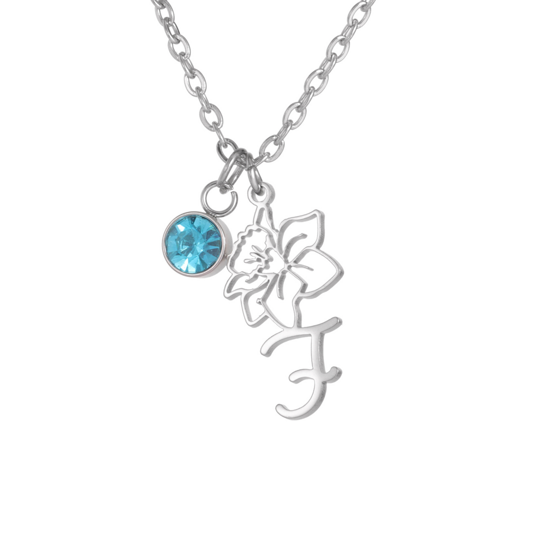 Express your individuality with this delicately engraved necklace featuring an elegant flower and your initial alongside a sparkling birthstone. This unique piece of jewellery is perfect for celebrating a loved one or gifting yourself a precious keepsake. The pendant is made of stainless steel, then plated in silver, gold, or rose gold, for a look that suits every style. The birthstone sparkles, adding a touch of colour and meaning. Personalise this necklace by selecting the initial and birthstone that hold special meaning to you.
