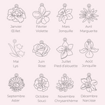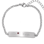 Personalised Engraved ID Bracelet with Flower and Birthstone
