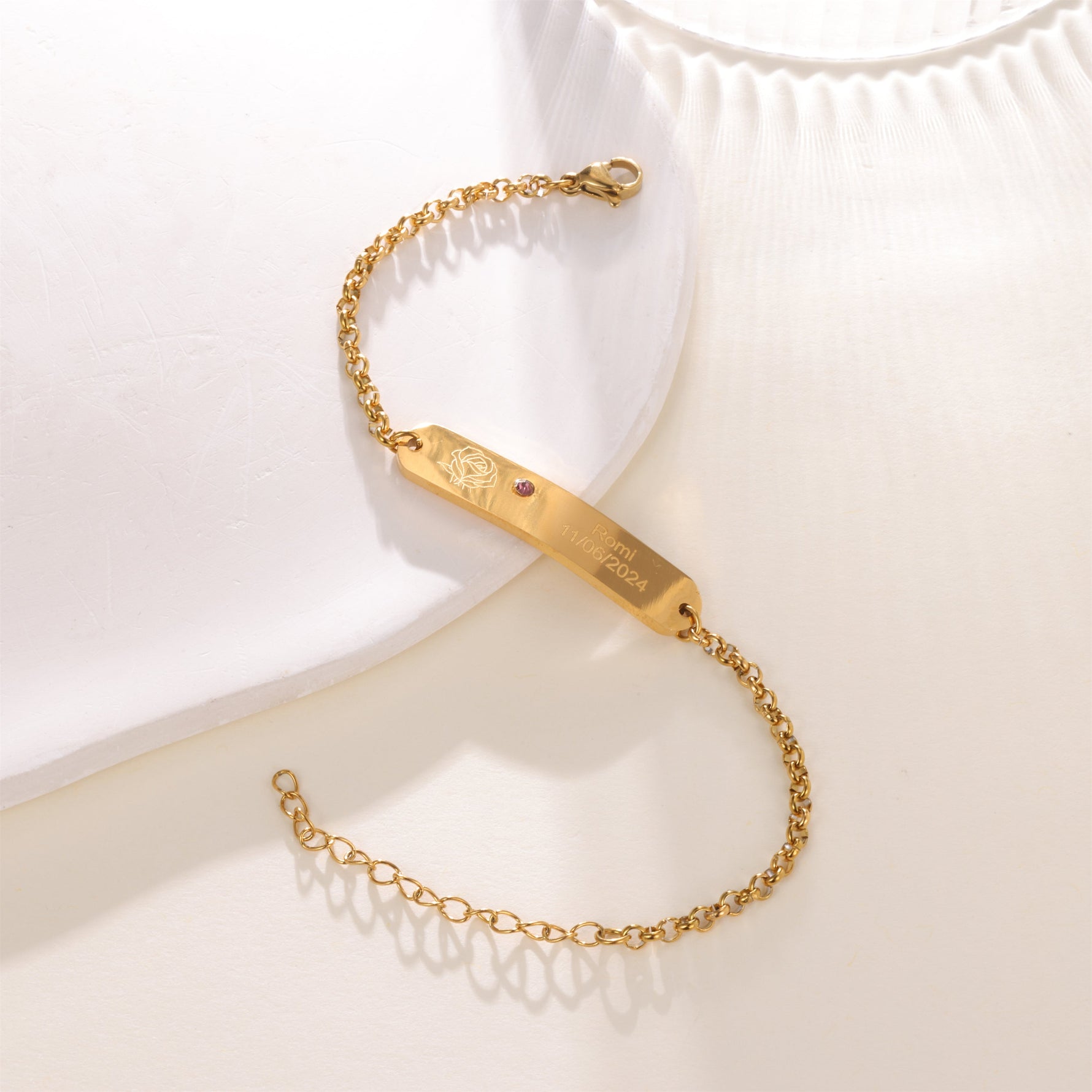 Express your love and create an eternal keepsake with our personalised engraved ID bracelet adorned with a birthstone. This elegant bracelet is fully customisable: inscribe the name or birth date of your choice and add a stone corresponding to the birth month. It is perfect for celebrating important moments, such as birthdays, births, or simply keeping your loved ones close to you.