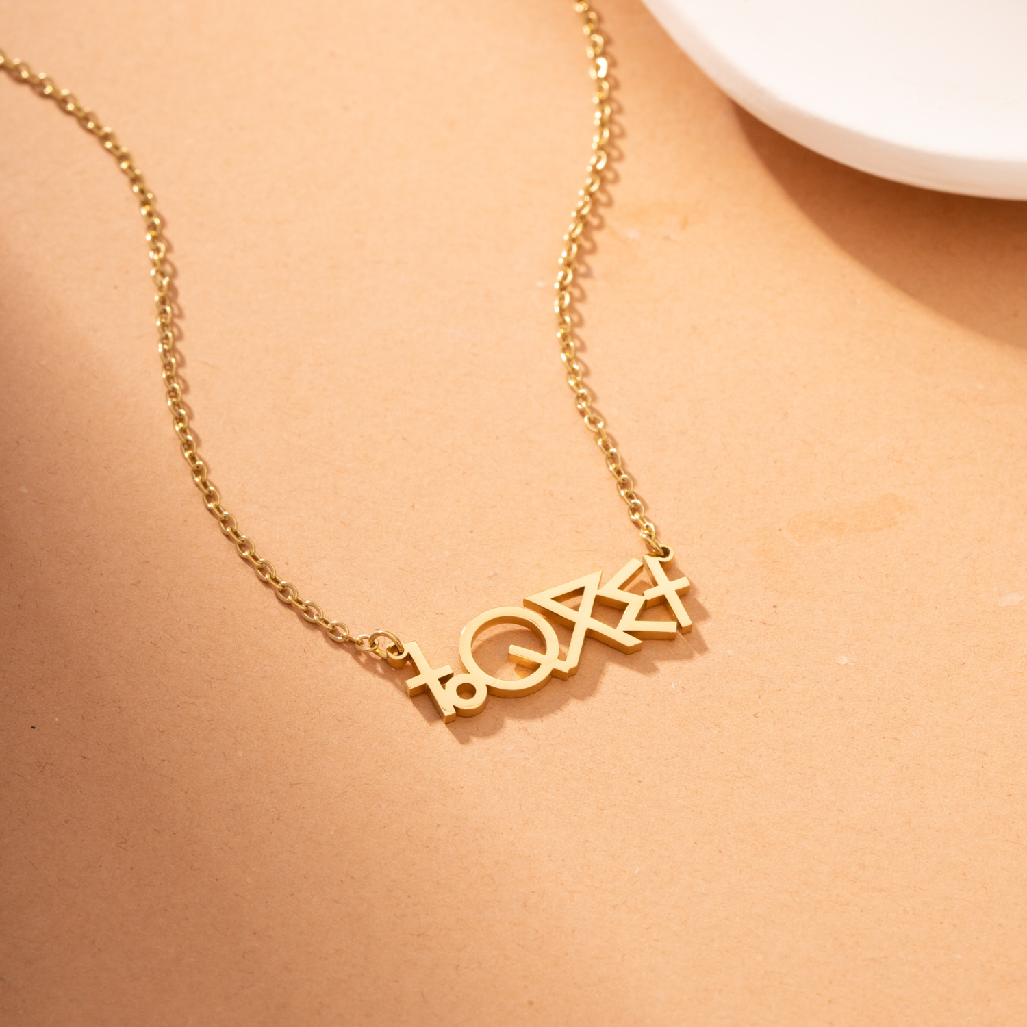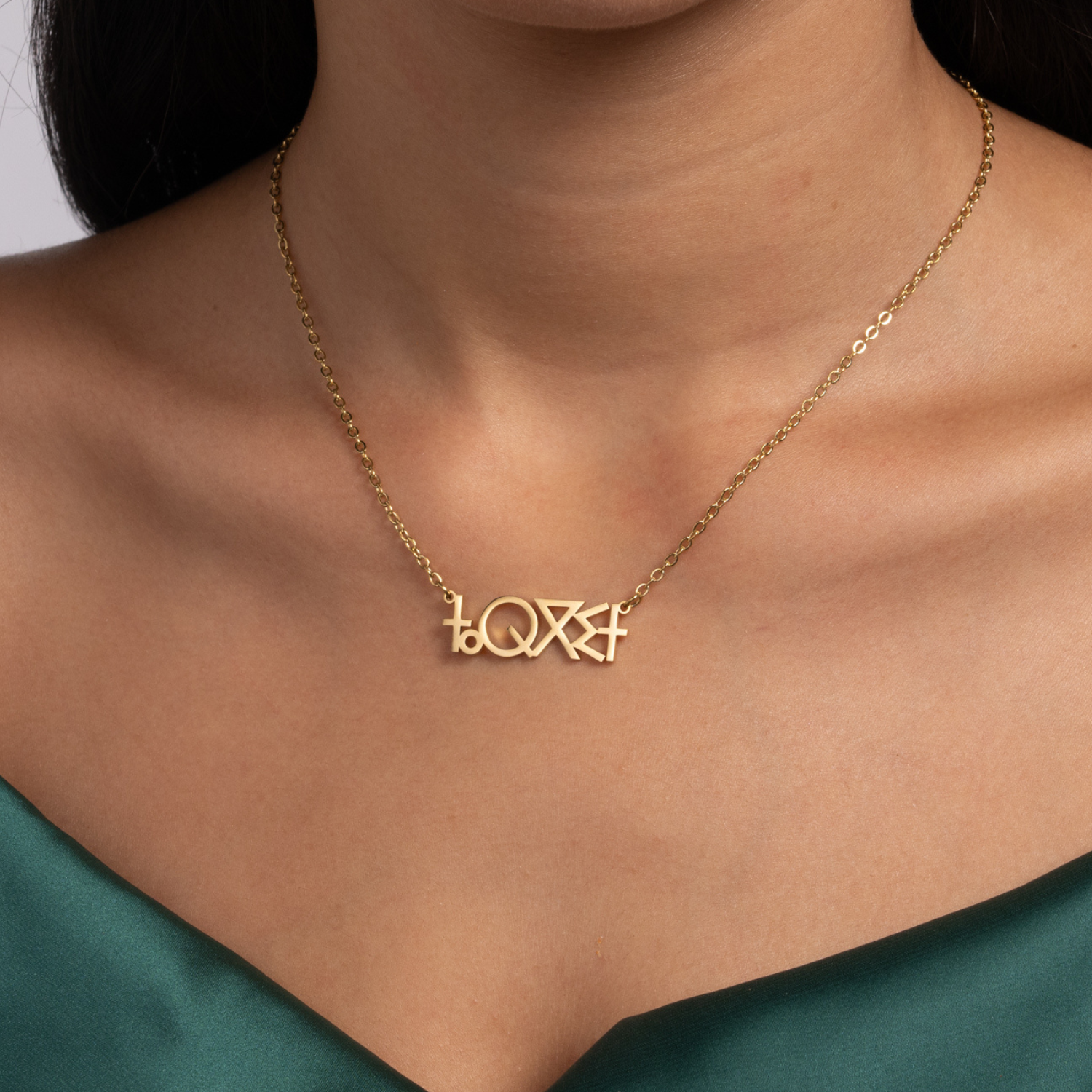 Customize your necklace with a name or word of your choice in Tifinagh characters, creating a piece that's uniquely yours. This necklace is more than jewelry; it's a connection to an ancient cultural legacy. Ideal for gifting or for adding a distinctive touch to your own collection, it harmonizes personal significance with elegant design.