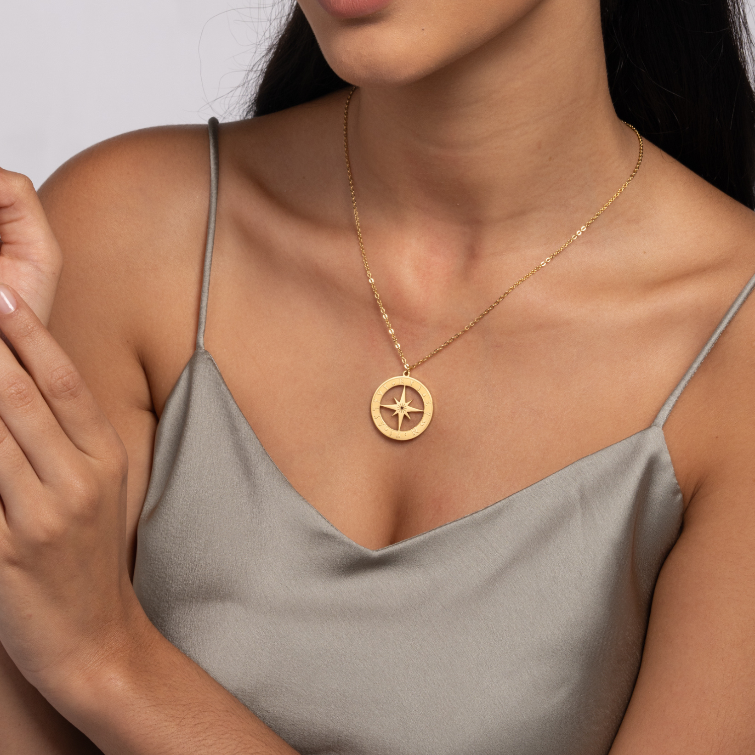 Wear this pendant as a symbol of your own spiritual journey, a personal connection to the origins of Islamic faith. The compass symbolizes the direction we must all turn to, not only physically but also spiritually.