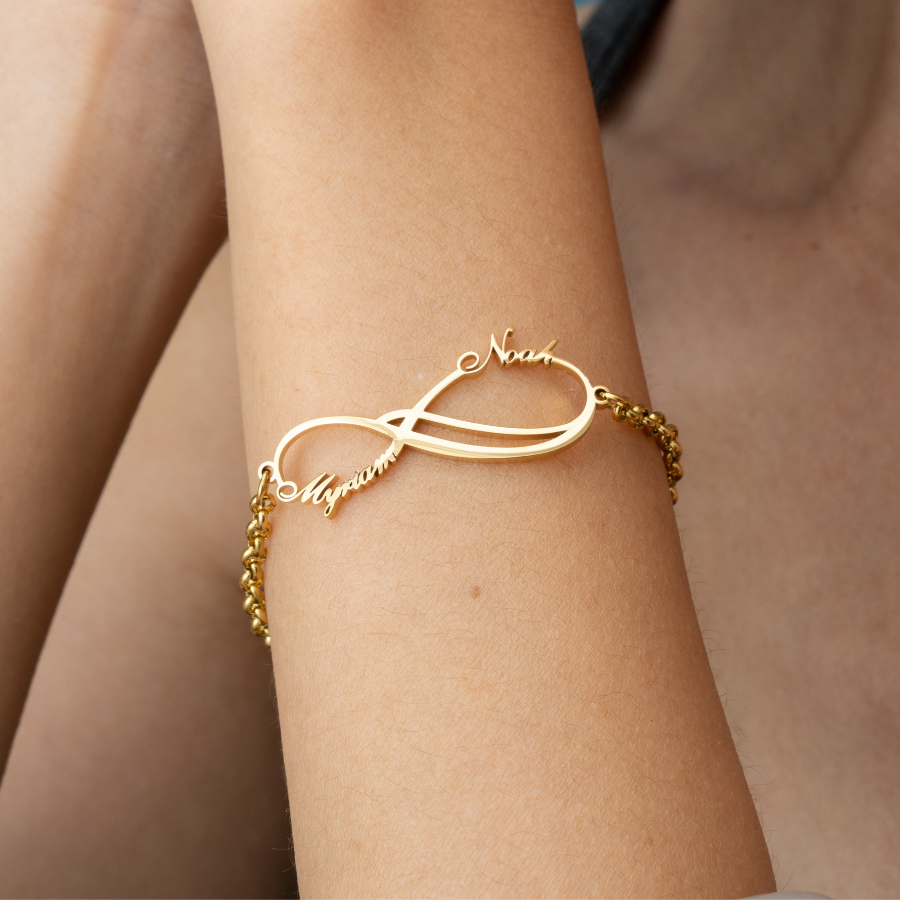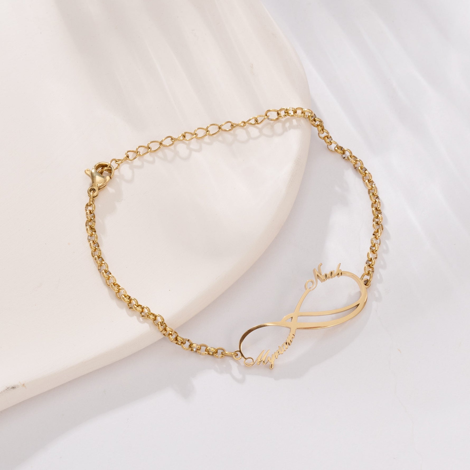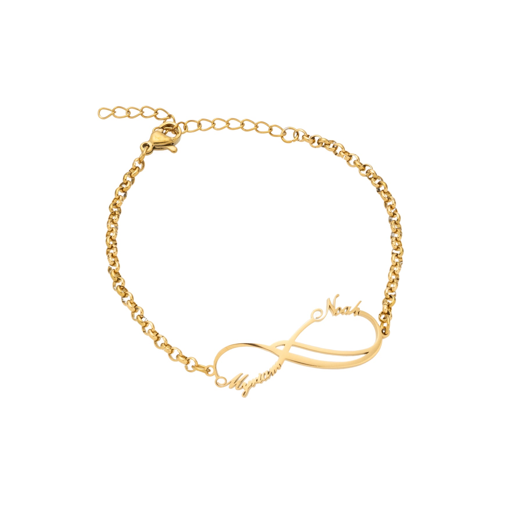 Celebrate eternal love with our Personalised Double Infinity with Two Names Bracelet, made from high-quality stainless steel and available in Gold, Silver, and Rose Gold finishes. Customize the infinity loops with two names, creating a meaningful and elegant tribute to your deepest relationships.