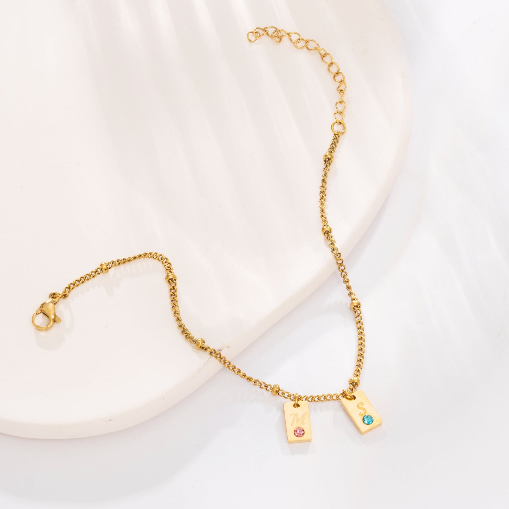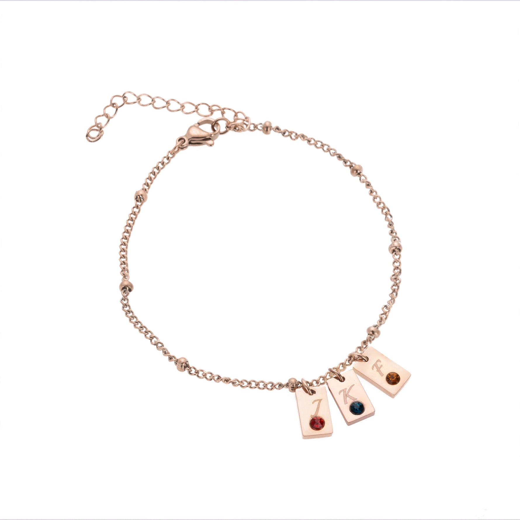 Celebrate life’s precious connections with our Personalised Initials and Birthstones Pendant Bracelet. This elegant design allows you to add up to five engraved tags, each featuring an initial and a sparkling birthstone, making it a meaningful keepsake that represents family, friends, or loved ones.