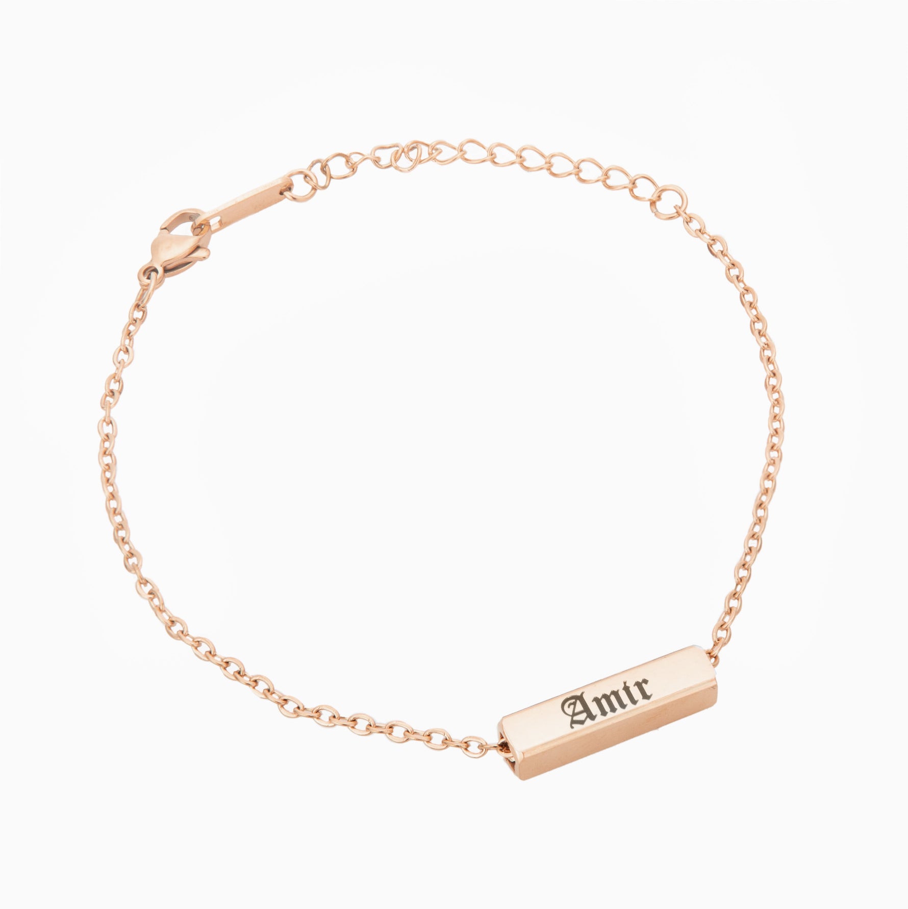 Immortalize the name of your beloved, commemorate a milestone date, or inscribe an uplifting message to craft a truly unique and intimate accessory. The choice of elegant Gothic lettering on the bar-shaped pendant infuses this piece with an air of elegance and distinction.