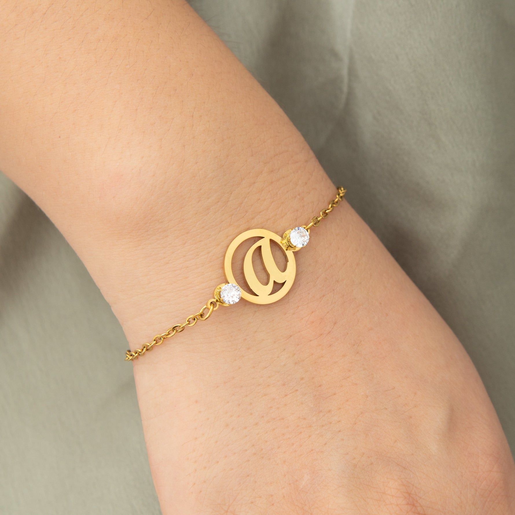 Express Your Personal Style with Our Custom Initial and Fancy Stone Bracelet. This delicate and elegant piece of jewelry is much more than a simple accessory; it captures your unique essence and deep-seated values.