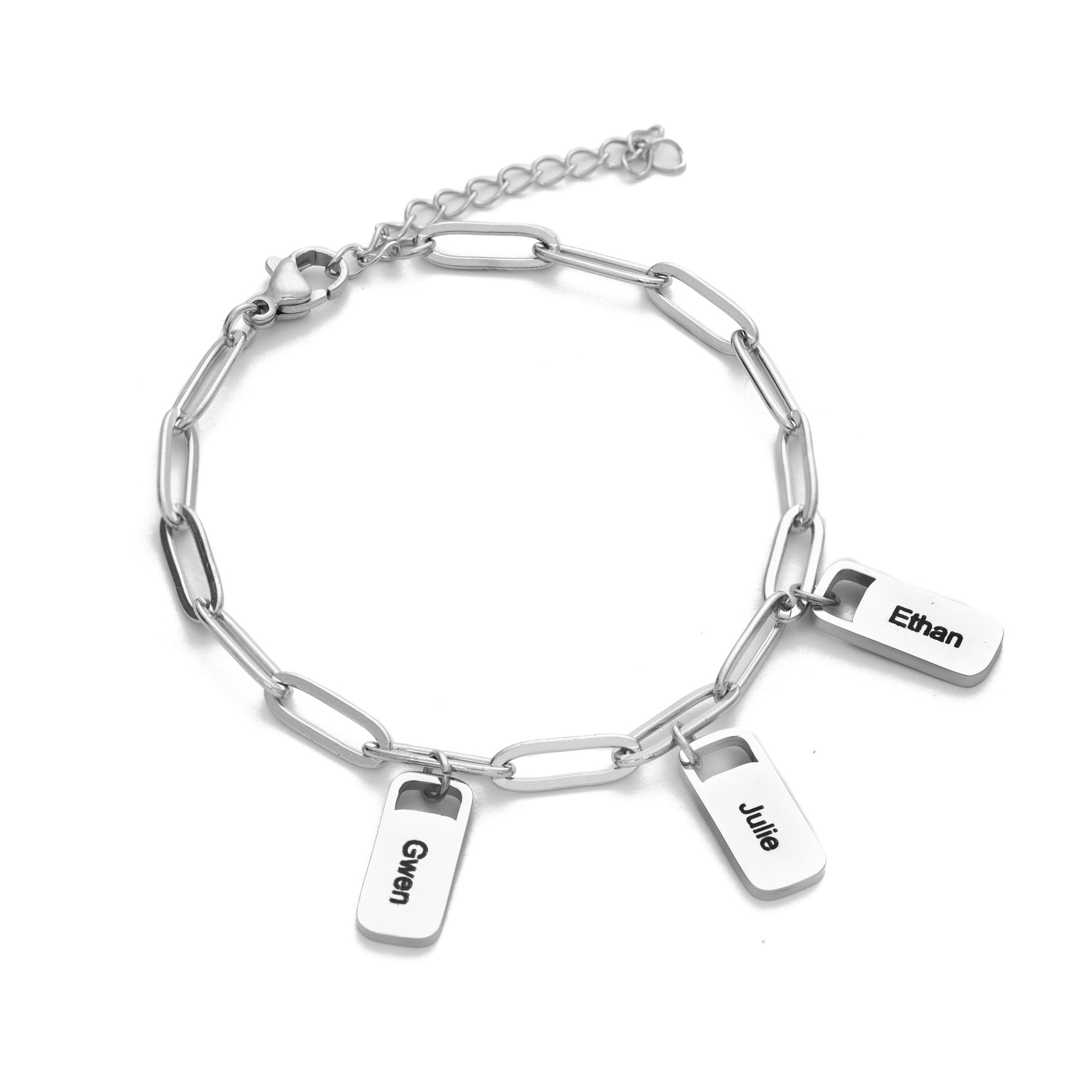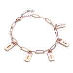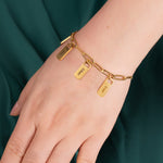 Say goodbye to the ordinary and express your individuality with this exceptional bracelet. Each medallion can be personalised with texts or names of your choice. Whether it's a special date, a meaningful word, or the name of a loved one, each medallion becomes a unique piece, carrying deep significance.
