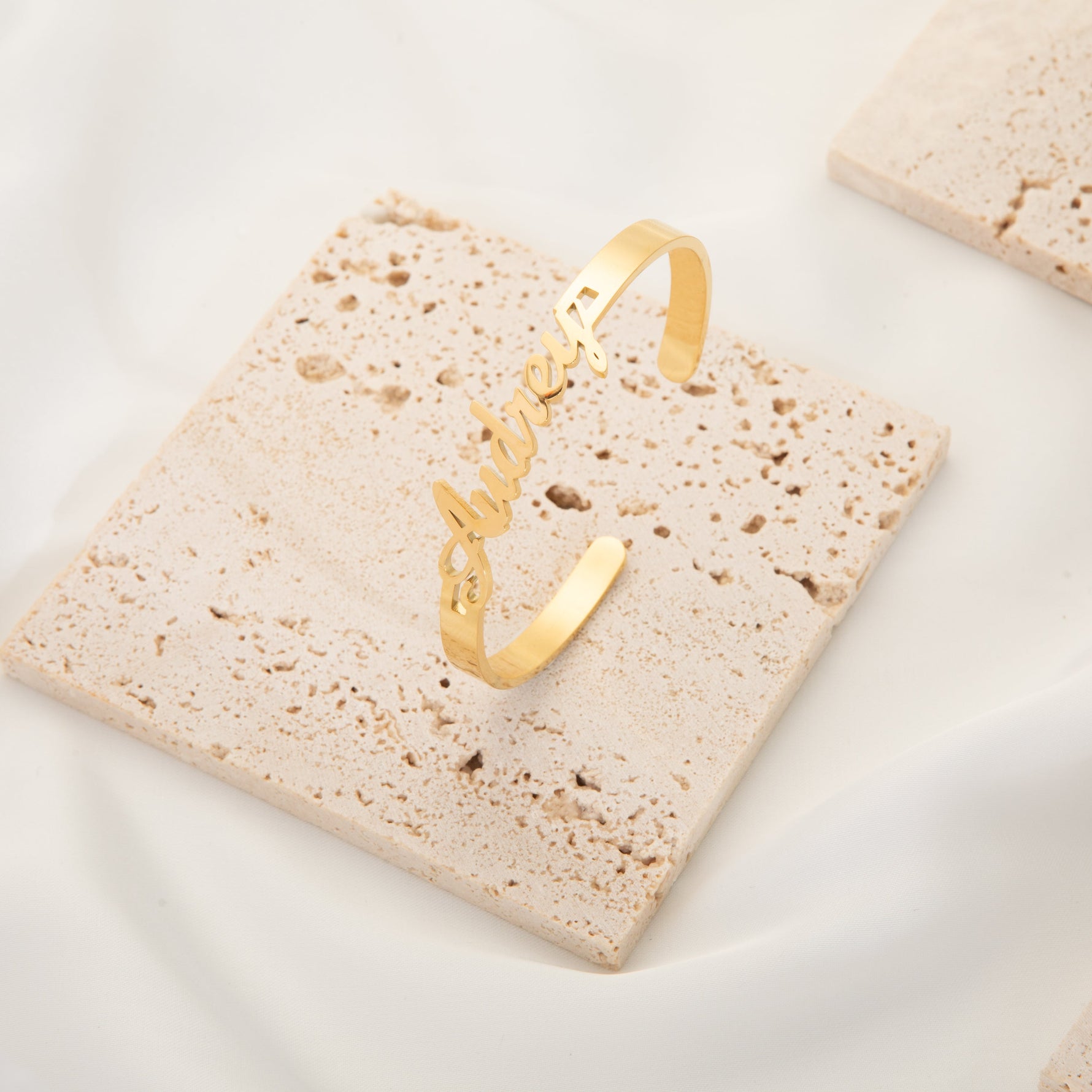 Custom-made to order, our bangle bracelet is available in gold, silver, or rose gold finishes, allowing you to choose the one that best fits your style. Its minimalist and sleek design makes it a perfect accessory for everyday wear, as well as for special occasions.