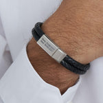 Introducing our Men's Jewellery Collection – where craftsmanship meets personal meaning. This handcrafted leather bracelet transforms into a treasured keepsake with your choice of personalised engraving.