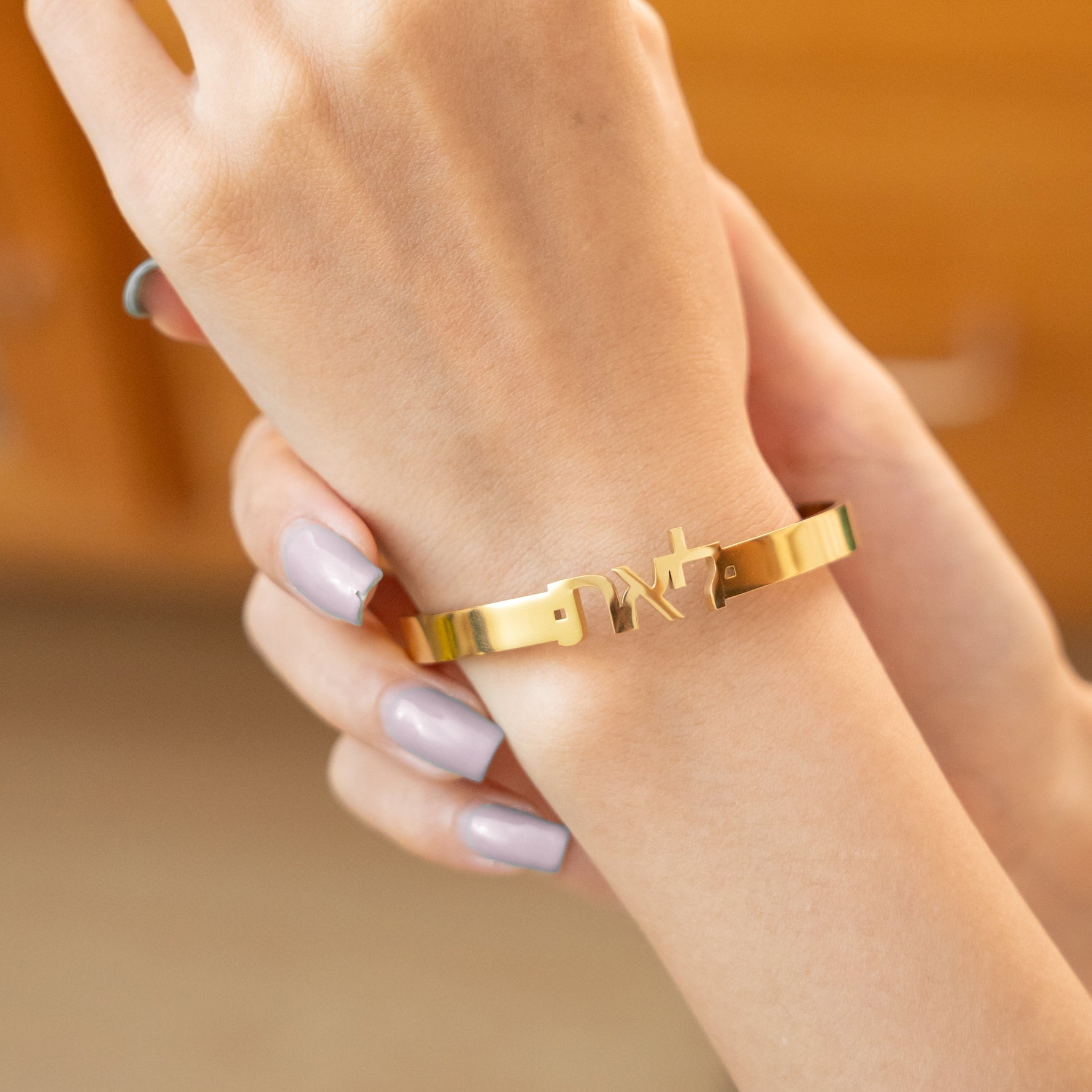Personalised Open Bangle Bracelet in Hebrew
