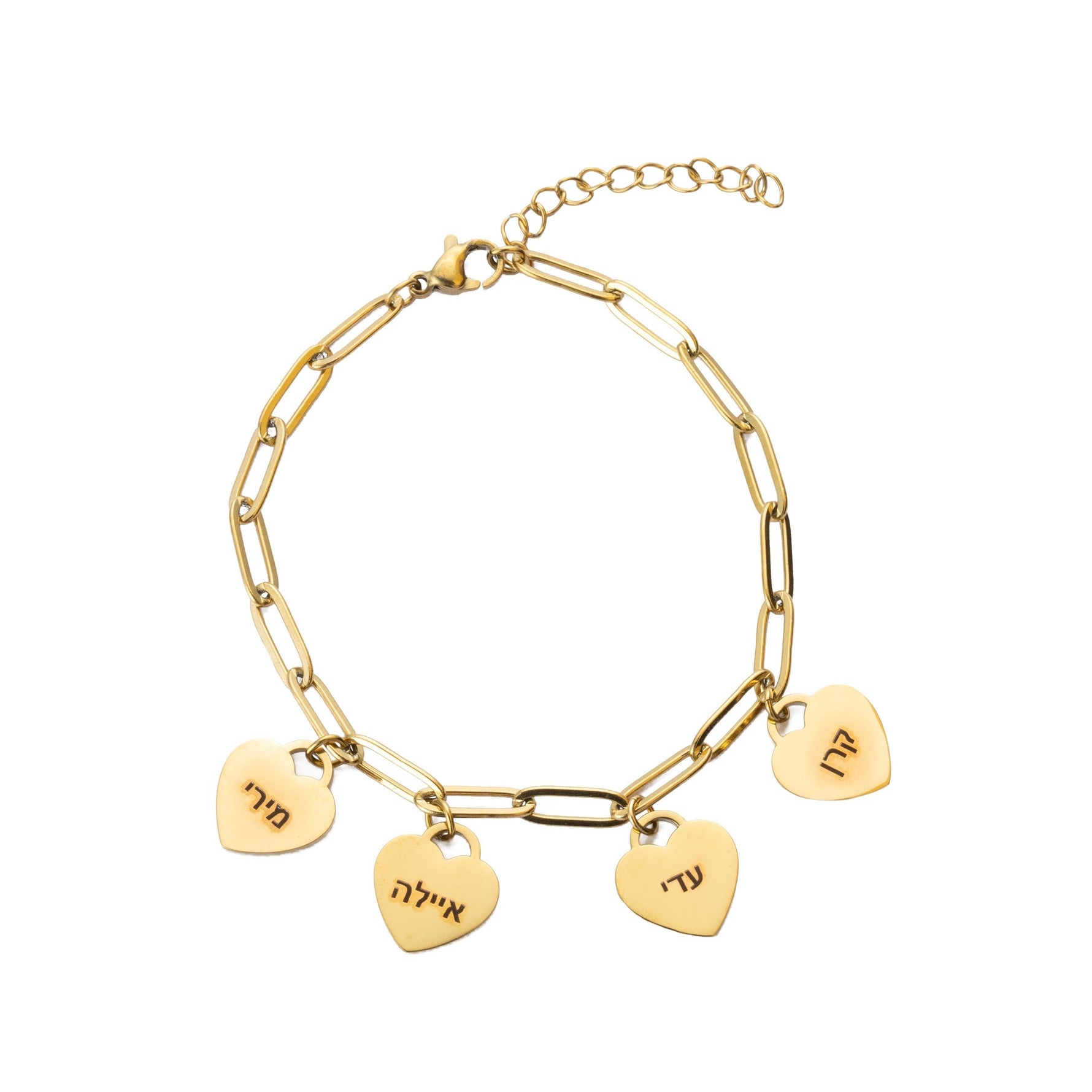 - Personalized Hearts: Customize each heart on the bracelet with a first name or special inscription in Hebrew, making it a unique piece that represents your cherished connections and moments.