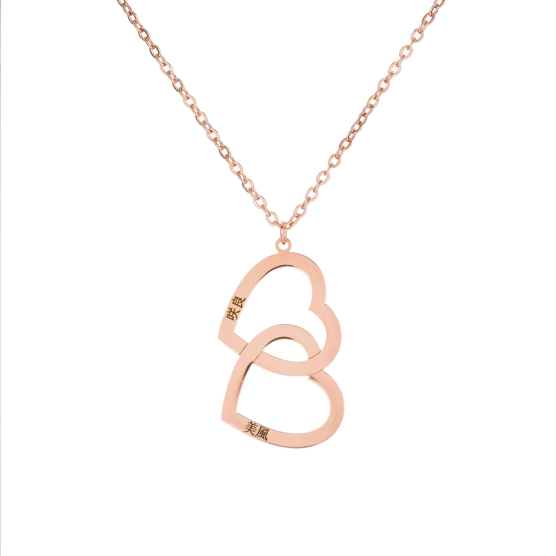 Japanese Personalised Double Heart Necklace with Two Names
