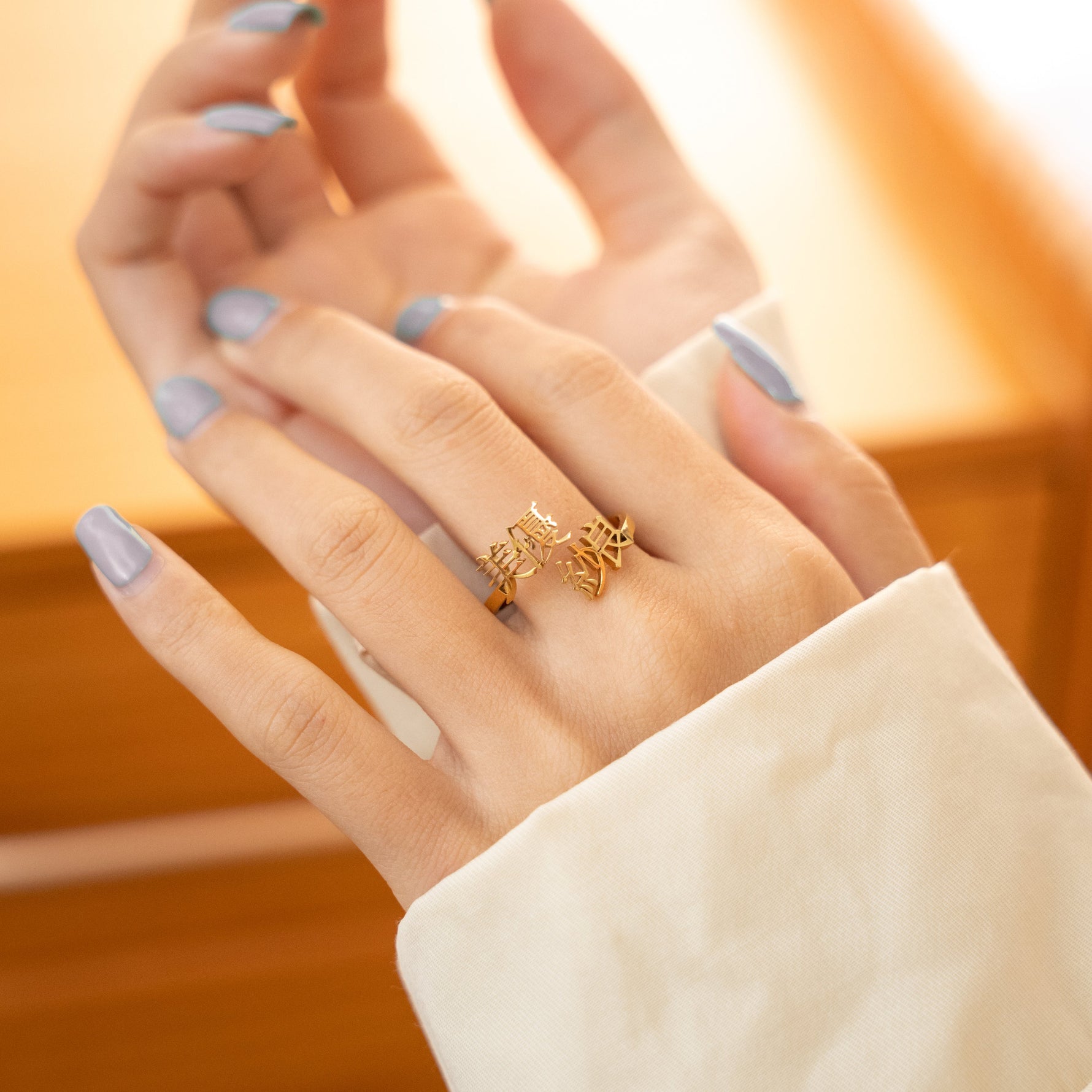 Express your connection with a personalised touch. Order your Japanese Personalised Two Names Ring today.