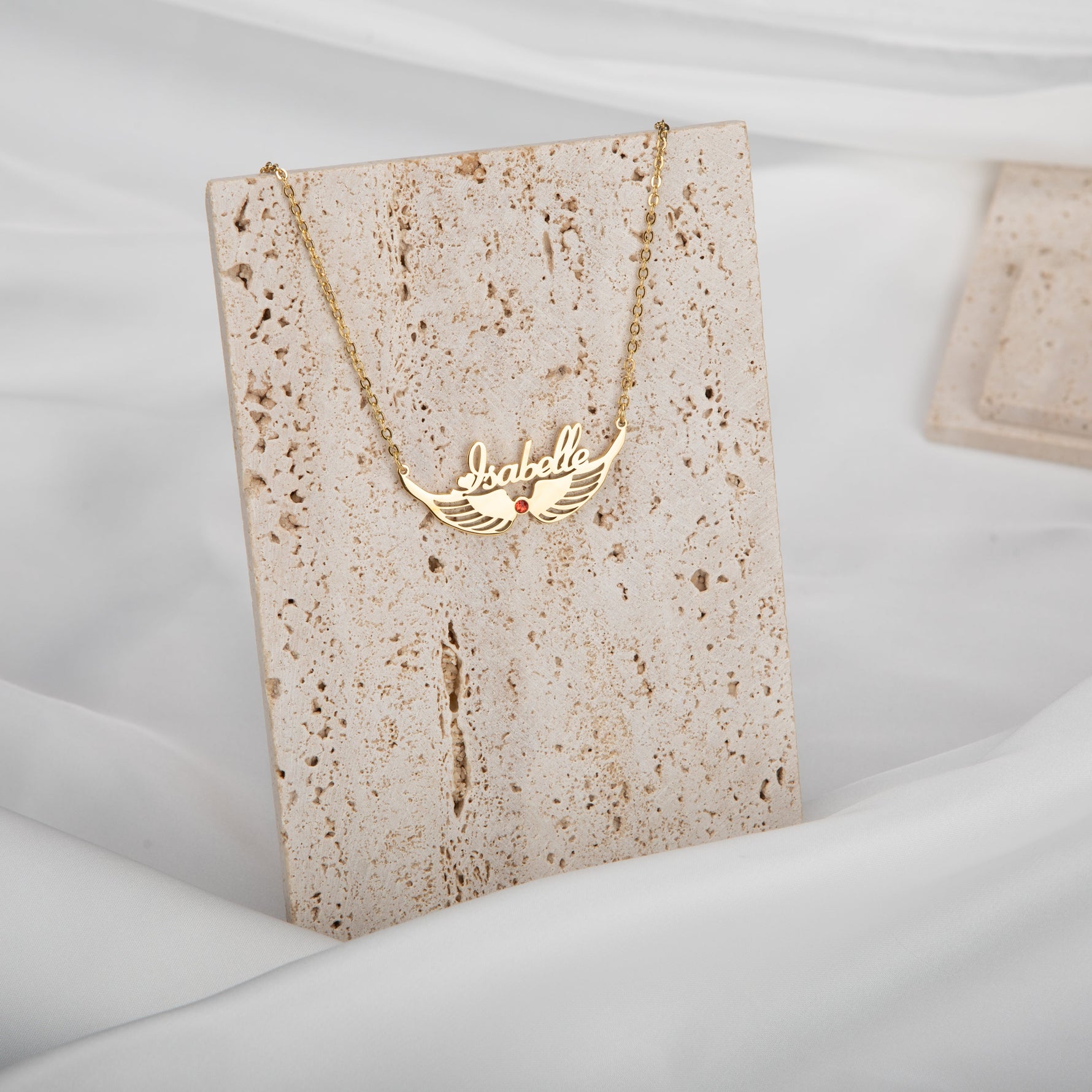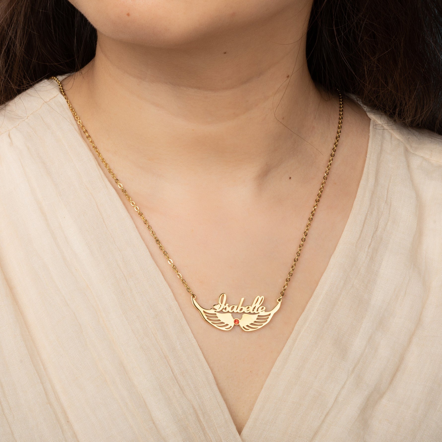 Name and Wings with Birthstone Necklace