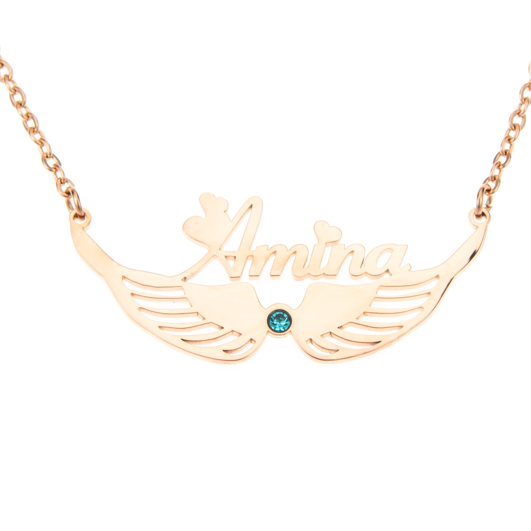 Express your personality and style with our personalised necklace, featuring a small heart and elegant angel wings! Personalise your necklace with a name or text of your choice to make it a unique piece that will accompany you daily. The small heart next to the name adds a romantic touch, while the angel wings below the name symbolize freedom, hope, and protection.